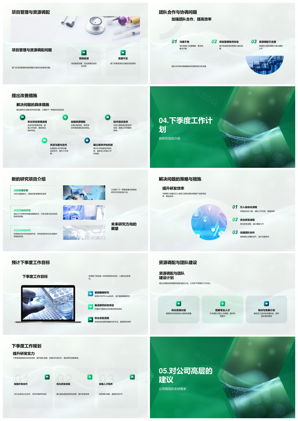 生物医疗季度汇报协作提升目标进度计划PPT模板