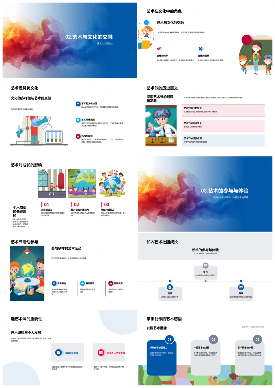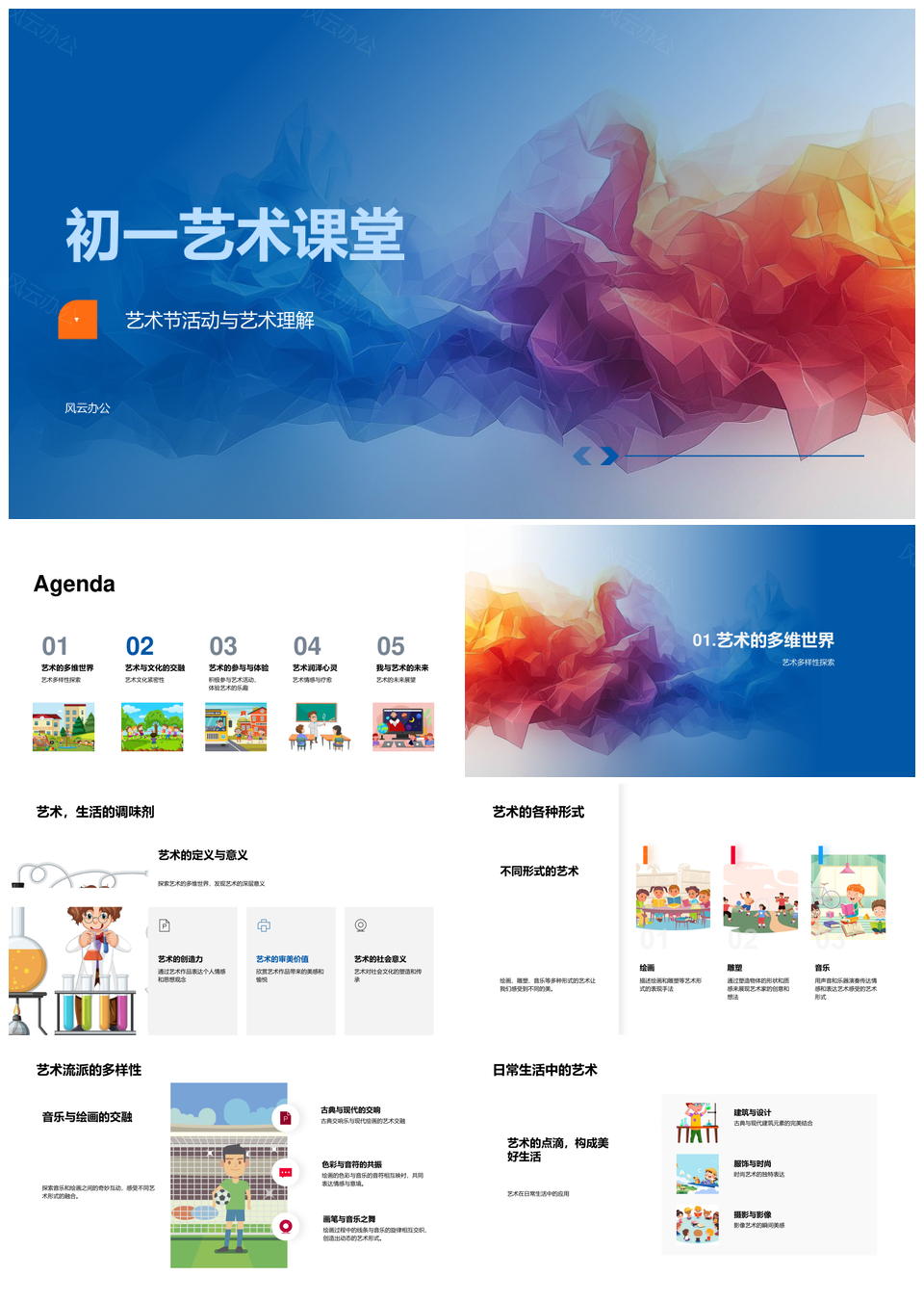 风云办公提供的初一艺术课堂探索定义形式流派多样性PPT模板,下载格式为pptx,一共28页,作品中文字及图均可以修改和编辑,图片更改请在作品中右键图片并更换,文字修改请直接点击文字进行修改。