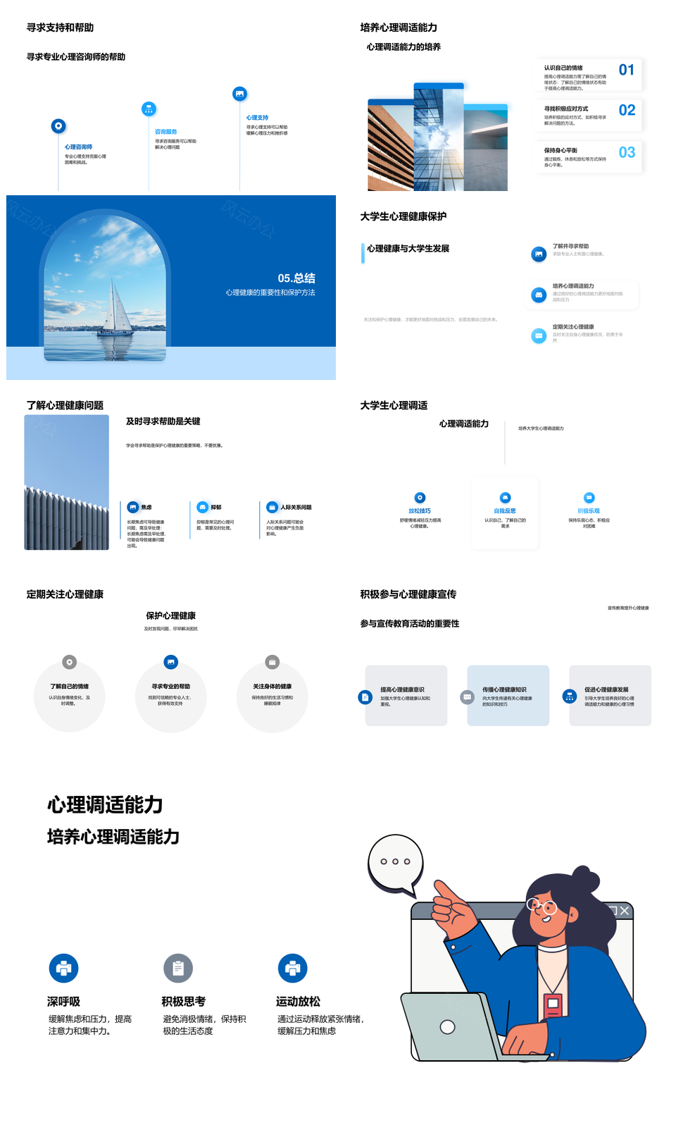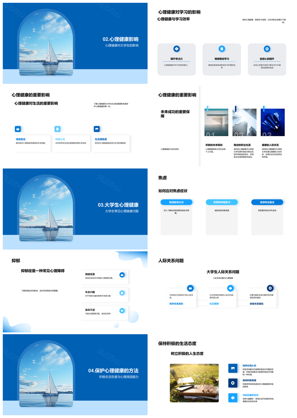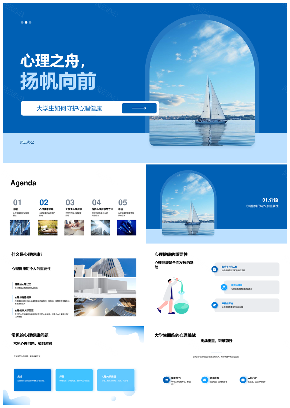 风云办公提供的大学生心理健康之舟扬帆迎战学业挑战PPT模板,下载格式为pptx,一共27页,作品中文字及图均可以修改和编辑,图片更改请在作品中右键图片并更换,文字修改请直接点击文字进行修改。