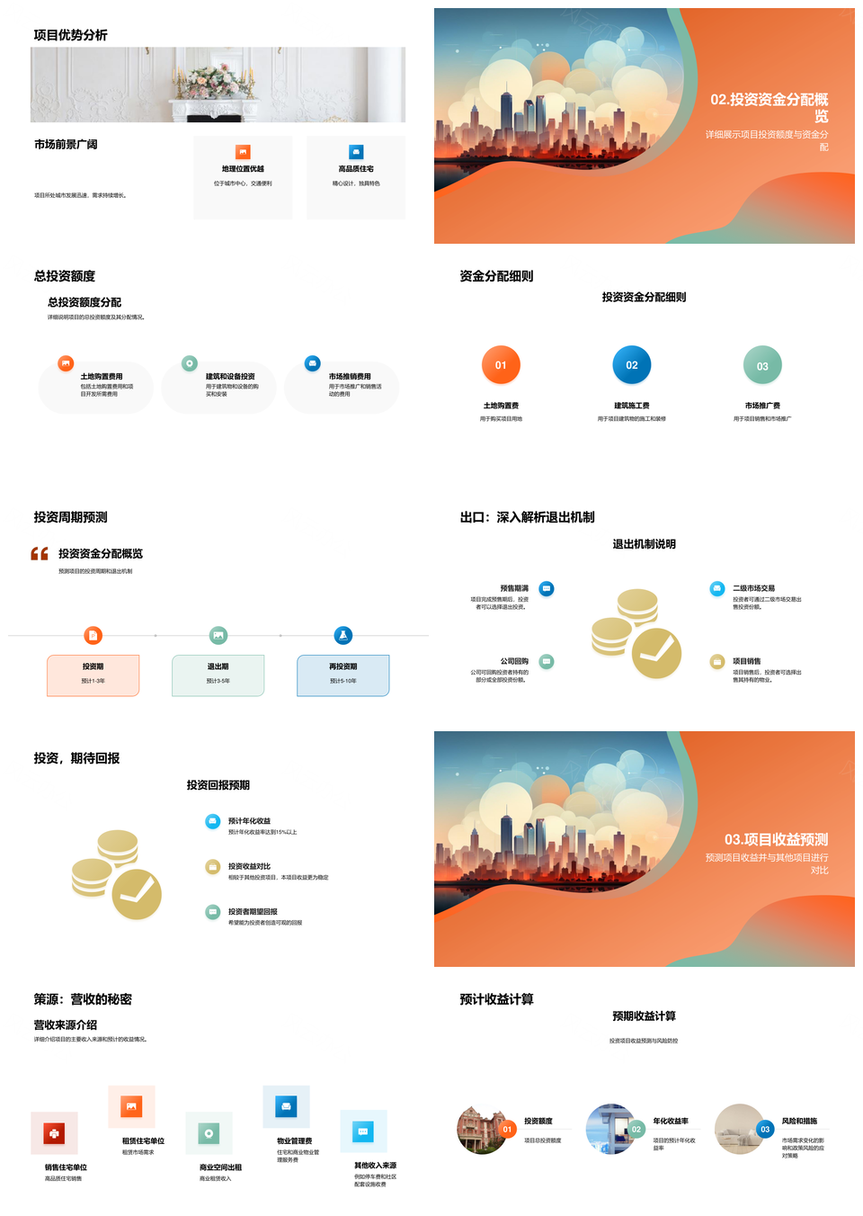 这是一张地产摩天大楼项目投资价值风险资金周期退出PPT模板,包含地产、摩天大楼、项目、投资价值、风险资金、周期、退出等主题内容,也可用作地产摩天大楼项目投资、摩天大楼项目投资价值、项目投资价值风险、投资价值风险资金、价值风险资金周期、风险资金周期退出、地产摩天大楼项目、摩天大楼项目投资、项目投资价值、投资价值风险、价值风险资金、风险资金周期、资金周期退出、地产摩天大楼、摩天大楼项目等PPT场景使用。 风云办公提供的地产摩天大楼项目投资价值风险资金周期退出PPT模板,下载格式为pptx,一共33页,作品中文字及图均可以修改和编辑,图片更改请在作品中右键图片并更换,文字修改请直接点击文字进行修改。
