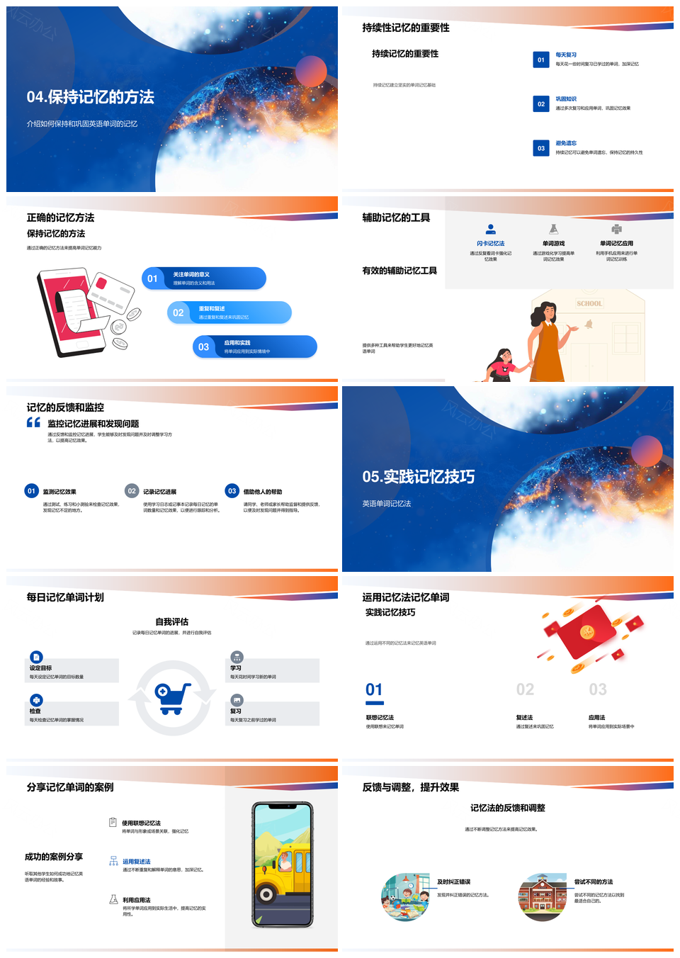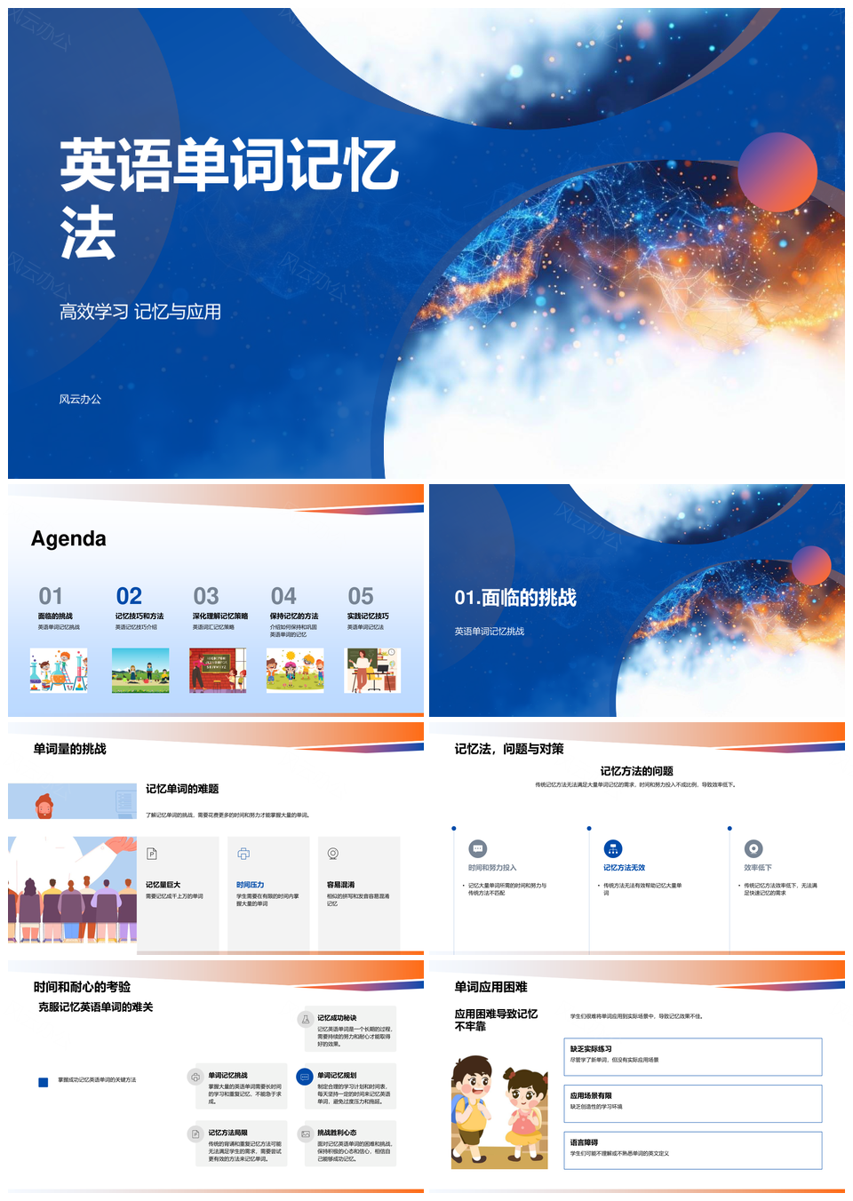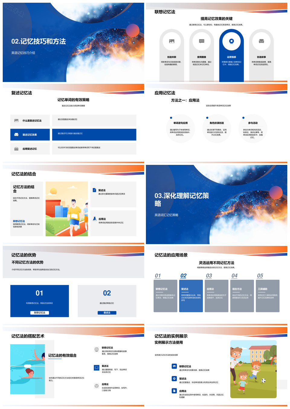 高效英语单词记忆法联想复述应用优势场景PPT模板推荐