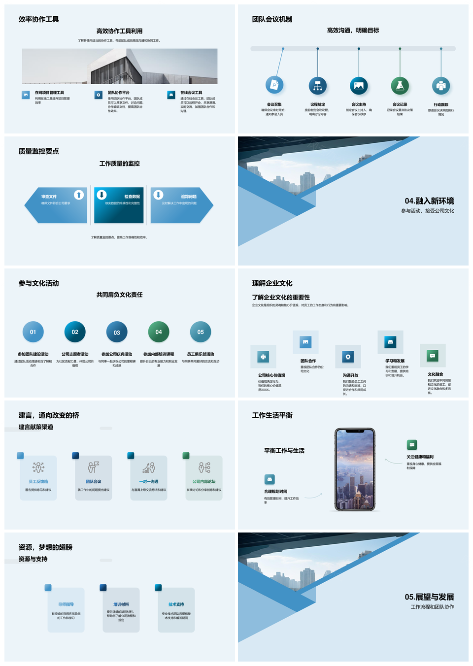 这是一张入职培训融入团队掌握公司文化发展历程PPT模板,包含入职培训、融入、团队、掌握、公司、文化、发展、历程等主题内容,也可用作入职培训融入团队掌握公司文化、入职培训掌握公司文化发展历程、融入团队掌握公司文化、团队掌握公司文化发展历程、掌握公司文化发展历程、入职培训融入团队、团队掌握公司文化、融入公司文化发展历程、入职培训公司文化、融入团队公司文化、公司文化发展历程、掌握发展历程、入职培训掌握公司文化、团队公司文化、融入团队等PPT场景使用。 风云办公提供的入职培训融入团队掌握公司文化发展历程PPT模板,下载格式为pptx,一共33页,作品中文字及图均可以修改和编辑,图片更改请在作品中右键图片并更换,文字修改请直接点击文字进行修改。