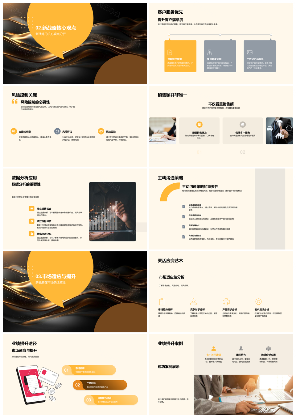 这是一张银行业绩新战略培训提升服务风控数据分析适应市场竞争PPT模板,包含银行、业绩、新战略、培训、提升、服务、风控、数据分析、适应、市场竞争等主题内容,也可用作银行业绩新战略培训提升、新战略培训提升服务、培训提升服务风控、提升服务风控数据分析、服务风控数据分析适应、风控数据分析适应市场竞争、银行业绩新战略培训、新战略培训提升、培训提升服务、提升服务风控、服务风控数据分析、风控数据分析适应、数据分析适应市场竞争、银行业绩新战略、新战略培训等PPT场景使用。 风云办公提供的银行业绩新战略培训提升服务风控数据分析适应市场竞争PPT模板,下载格式为pptx,一共29页,作品中文字及图均可以修改和编辑,图片更改请在作品中右键图片并更换,文字修改请直接点击文字进行修改。