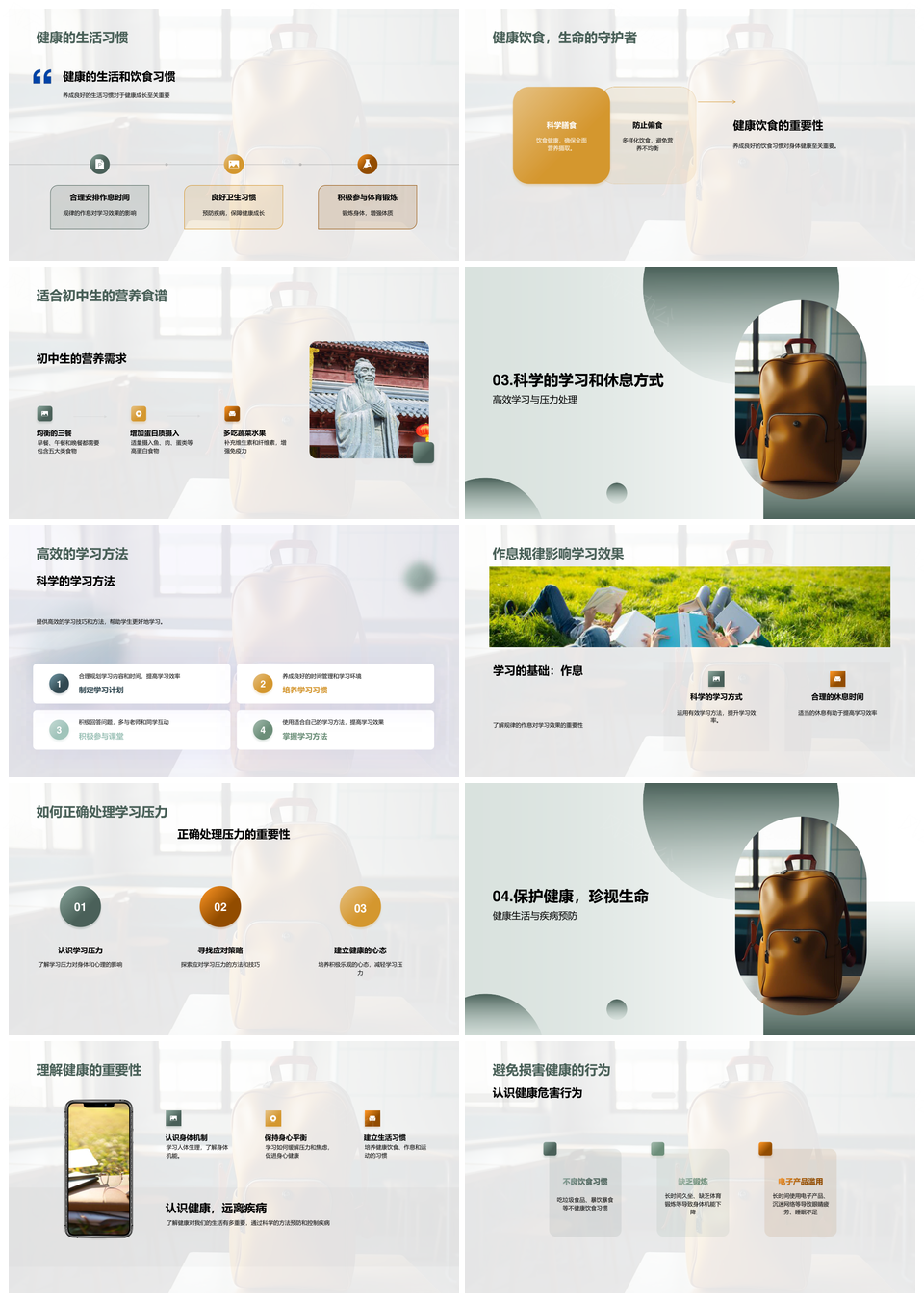 风云办公提供的初中生健康发育习惯饮食与学习方法PPT模板,下载格式为pptx,一共23页,作品中文字及图均可以修改和编辑,图片更改请在作品中右键图片并更换,文字修改请直接点击文字进行修改。