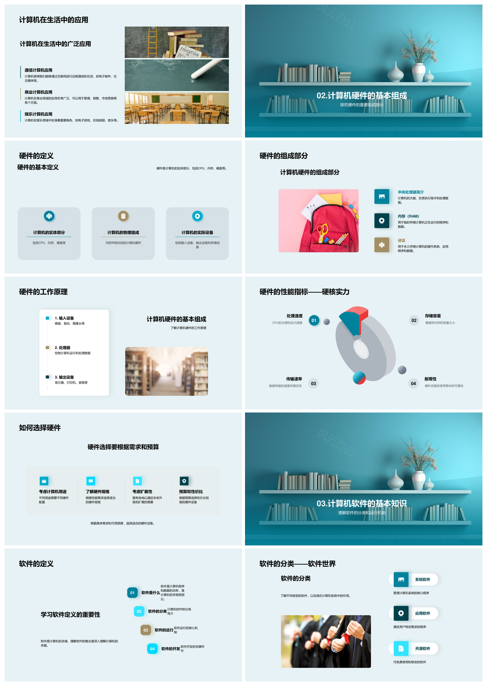计算机基础历史软硬件组成数据存储处理应用PPT模板