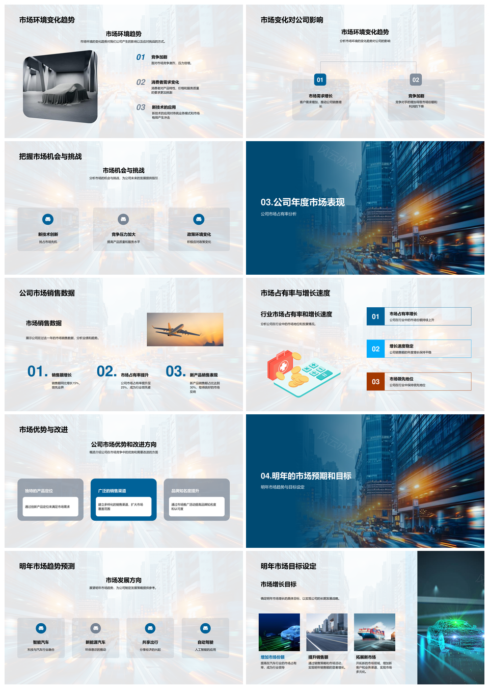 这是一张汽车市场季度总结团队策略活动趋势占有率城市销售PPT模板,包含汽车市场、季度总结、团队策略、活动趋势、占有率、城市销售等主题内容,也可用作汽车市场季度总结、团队策略活动趋势、市场占有率城市销售、季度总结团队策略、活动趋势占有率城市、占有率城市销售、团队策略城市销售、汽车市场占有率趋势、季度总结活动趋势、汽车市场团队策略、市场活动趋势占有率、占有率趋势城市销售、季度占有率城市销售、汽车市场销售趋势、策略活动城市销售等PPT场景使用。 风云办公提供的汽车市场季度总结团队策略活动趋势占有率城市销售PPT模板,下载格式为pptx,一共23页,作品中文字及图均可以修改和编辑,图片更改请在作品中右键图片并更换,文字修改请直接点击文字进行修改。
