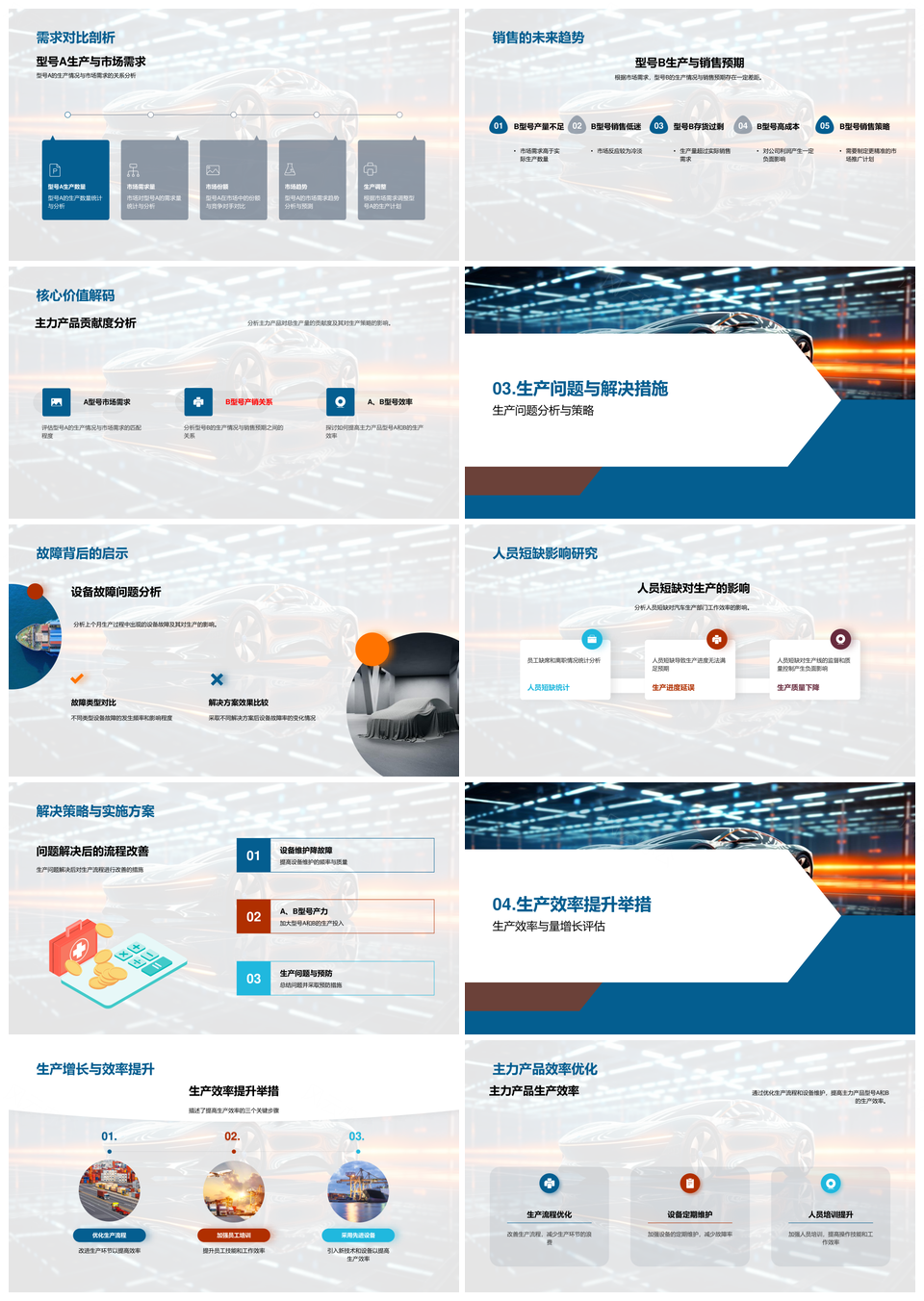 这是一张汽车生产月度效率AB需求产量故障人力流程解析PPT模板,包含汽车、生产、月度、效率、AB、需求、产量、故障、人力、流程、解析等主题内容,也可用作汽车生产月度效率AB需求产量故障人力流程解析、汽车生产月度效率AB需求产量故障、月度效率AB需求产量故障人力、效率AB需求产量故障人力流程解析、AB需求产量故障人力流程解析、汽车生产月度效率AB需求、汽车生产月度效率产量故障、月度效率AB需求产量、效率AB需求产量故障、AB需求产量故障人力、产量故障人力流程解析、汽车生产月度效率、月度效率AB需求、效率AB需求产量、AB需求产量故障等PPT场景使用。 风云办公提供的汽车生产月度效率AB需求产量故障人力流程解析PPT模板,下载格式为pptx,一共23页,作品中文字及图均可以修改和编辑,图片更改请在作品中右键图片并更换,文字修改请直接点击文字进行修改。