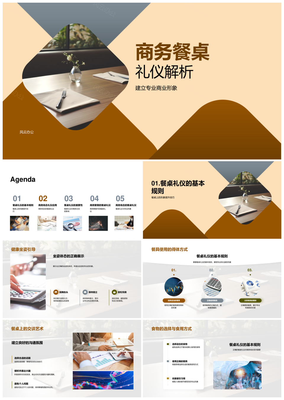 风云办公提供的商务餐桌礼仪与专业商业形象培训解析PPT模板,下载格式为pptx,一共24页,作品中文字及图均可以修改和编辑,图片更改请在作品中右键图片并更换,文字修改请直接点击文字进行修改。