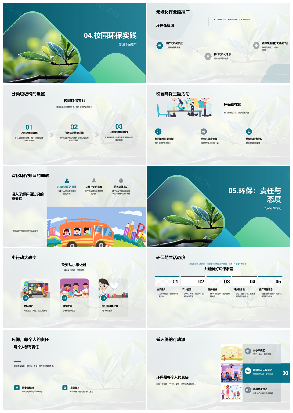 绿色校园环保节能垃圾分类绿化节水节电提升生活PPT模板