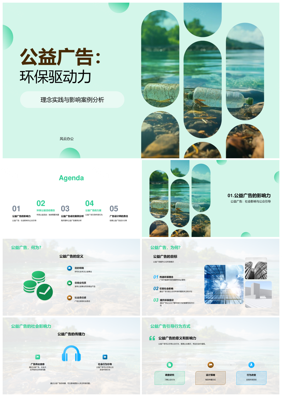 这是一张公益广告驱动环保案例引导公众回收海洋垃圾PPT模板,包含公益广告、驱动、环保案例、引导、公众、回收、海洋垃圾等主题内容,也可用作公益广告驱动环保案例引导、公益广告引导公众回收海洋、公益广告驱动环保案例、公益广告引导公众回收、驱动环保案例引导公众、环保案例引导公众回收、案例引导公众回收海洋、案例引导公众回收、引导公众回收海洋垃圾、公众回收海洋垃圾、公益广告驱动环保、驱动环保案例引导、公益广告引导公众、环保案例引导公众、案例引导公众回收等PPT场景使用。 风云办公提供的公益广告驱动环保案例引导公众回收海洋垃圾PPT模板,下载格式为pptx,一共28页,作品中文字及图均可以修改和编辑,图片更改请在作品中右键图片并更换,文字修改请直接点击文字进行修改。