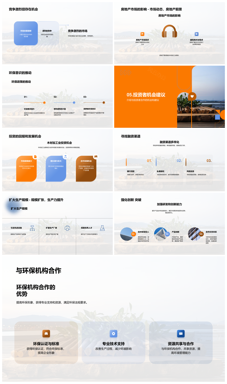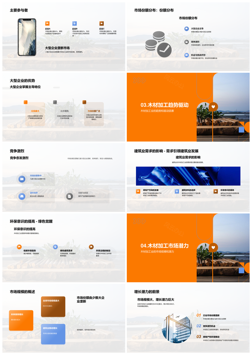 风云办公提供的木材加工业绿色合作创新引投资者增长PPT模板,下载格式为pptx,一共27页,作品中文字及图均可以修改和编辑,图片更改请在作品中右键图片并更换,文字修改请直接点击文字进行修改。