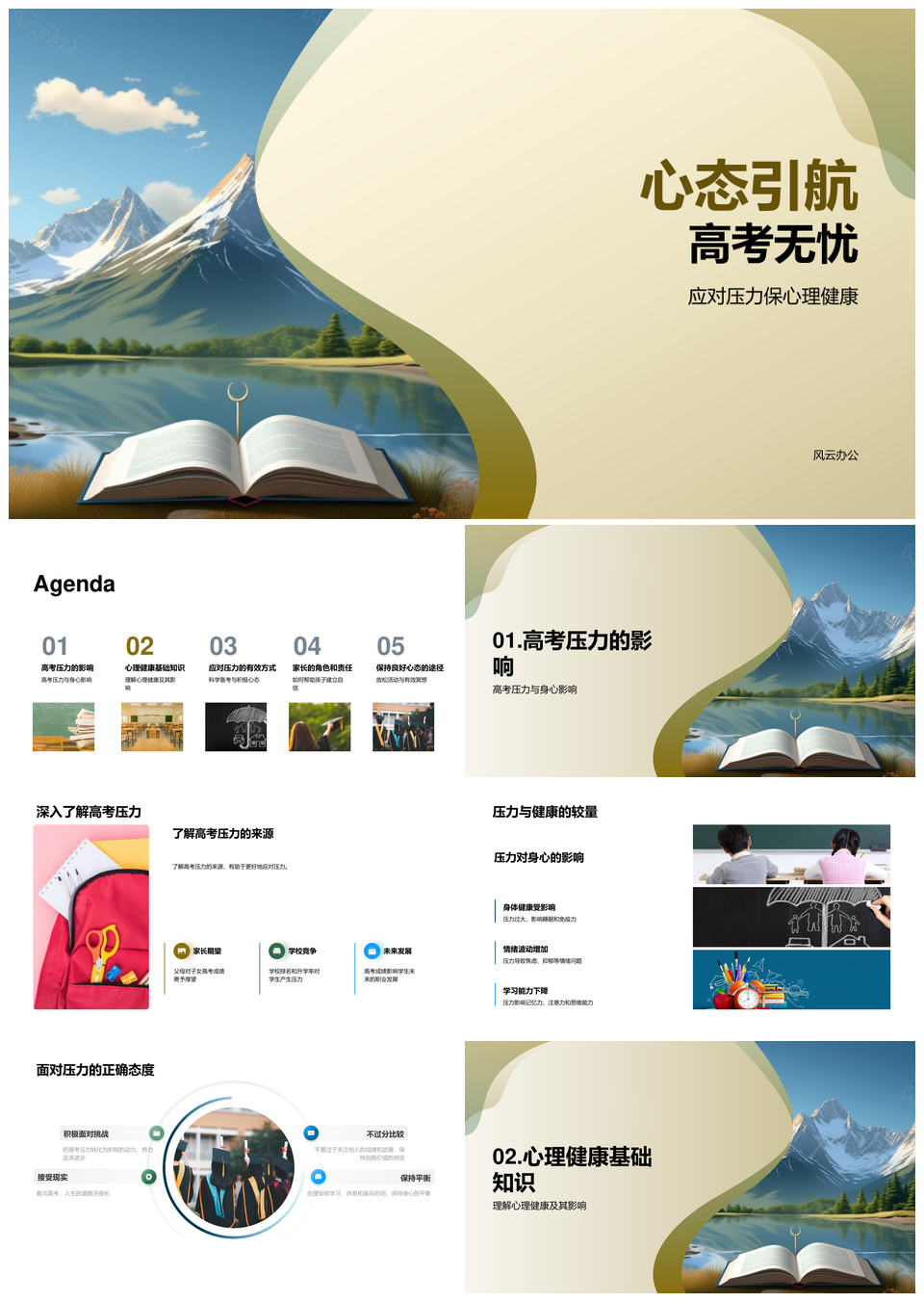 风云办公提供的心理健康护航高考应对压力PPT模板,下载格式为pptx,一共23页,作品中文字及图均可以修改和编辑,图片更改请在作品中右键图片并更换,文字修改请直接点击文字进行修改。