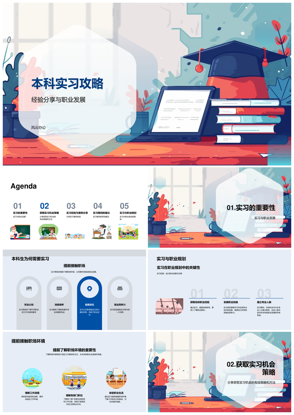 本科实习攻略职业规划机会获取与职场建议PPT模板推荐