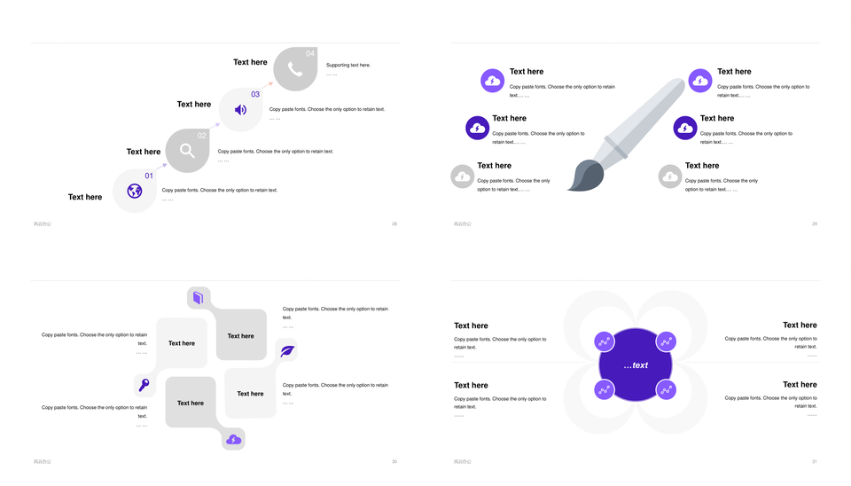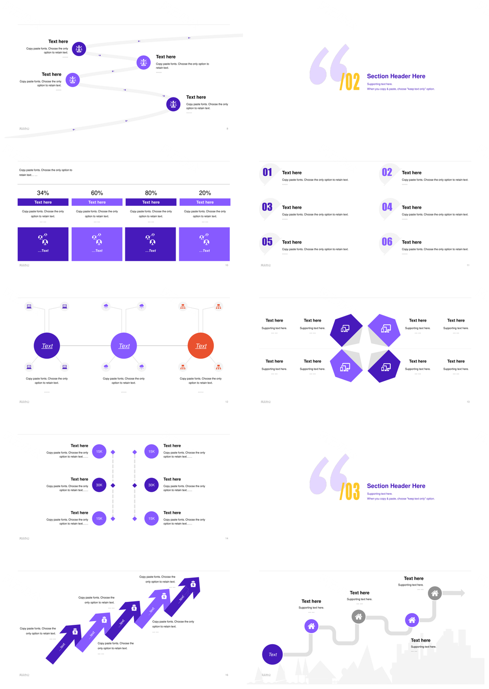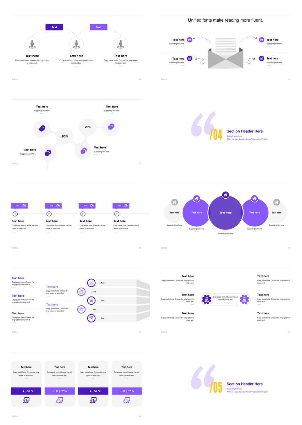 这款模板以艺术感插画为核心,采用浅紫与灰紫打造柔和主色调,点缀霓虹紫增强节日氛围,视觉层次丰富。页面融入萌系卡通元素与童趣手绘线条,图标设计采用圆润造型与动态图形搭配,兼具专业性与创意表达。模块化设计框架适配儿童节活动、亲子主题分享、文创作品展示等场景,治愈系视觉语言通过低饱和渐变背景与朦胧光影呈现。细节处理上,可选四款霓虹紫强调色系提升视觉层次,矢量素材支持自由拆分重组,确保内容编排的灵活性。