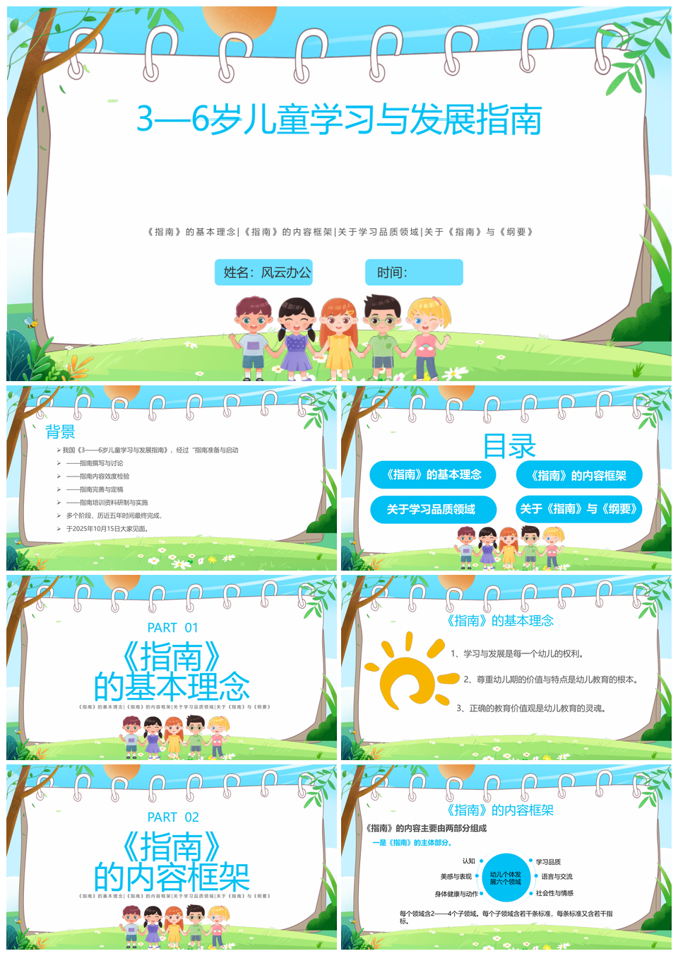 202536岁儿童学习发展指南蓝色简约PPT课件幼儿园膳食心肺复苏培训