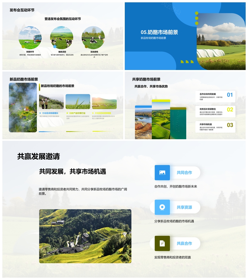 这是一张牧场奶酪新品发布会领航市场机遇PPT模板,包含牧场、奶酪、新品、发布会、领航、市场、机遇等主题内容,也可用作牧场奶酪新品发布会、奶酪新品发布会领航、新品发布会领航市场、发布会领航市场机遇、牧场奶酪新品、奶酪新品发布会、新品发布会领航、发布会领航市场、领航市场机遇、牧场奶酪、奶酪新品、新品发布会、发布会领航、领航市场、市场机遇等PPT场景使用。