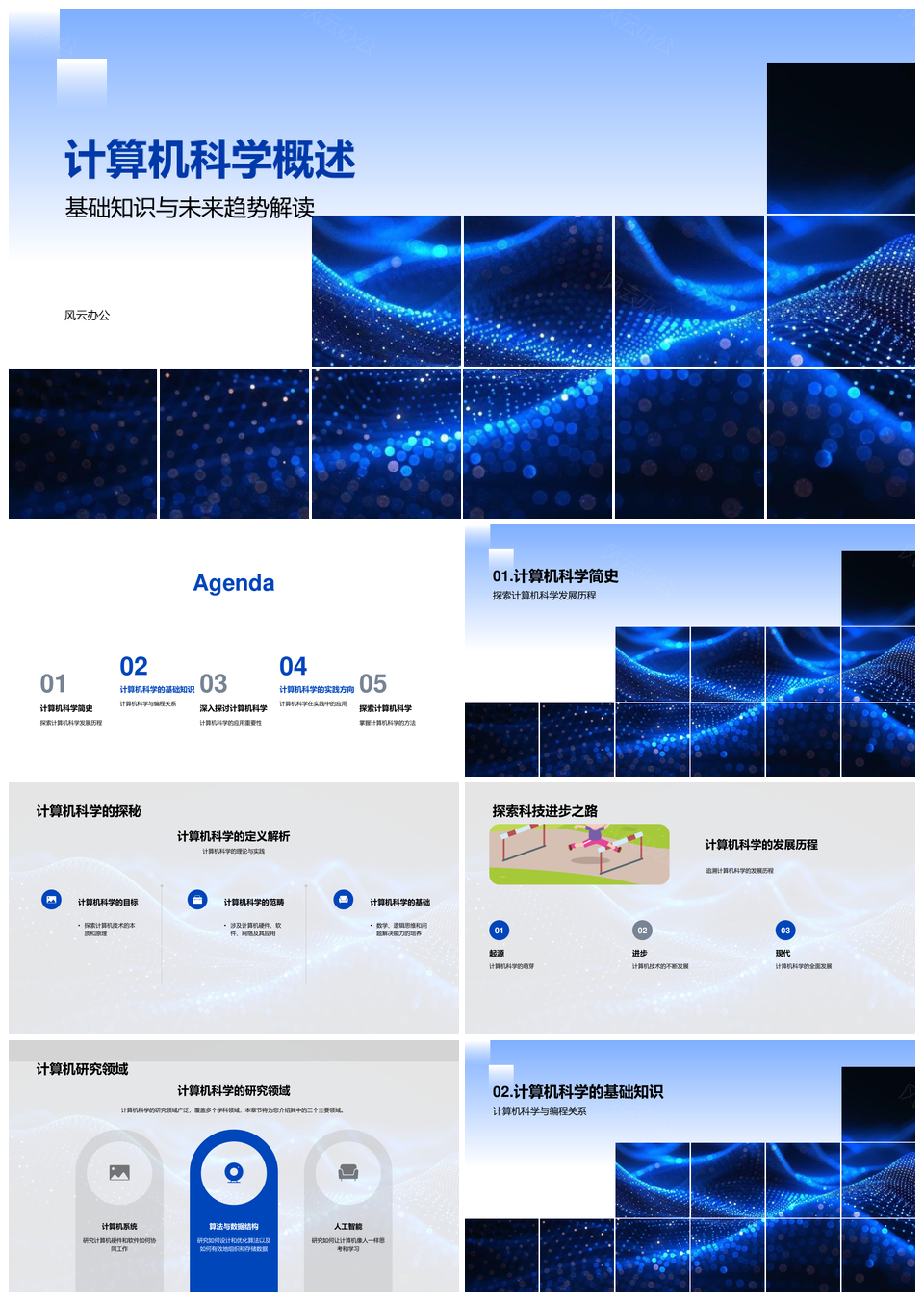 风云办公提供的计算机科学演进基础趋势与应用PPT模板,下载格式为pptx,一共23页,作品中文字及图均可以修改和编辑,图片更改请在作品中右键图片并更换,文字修改请直接点击文字进行修改。