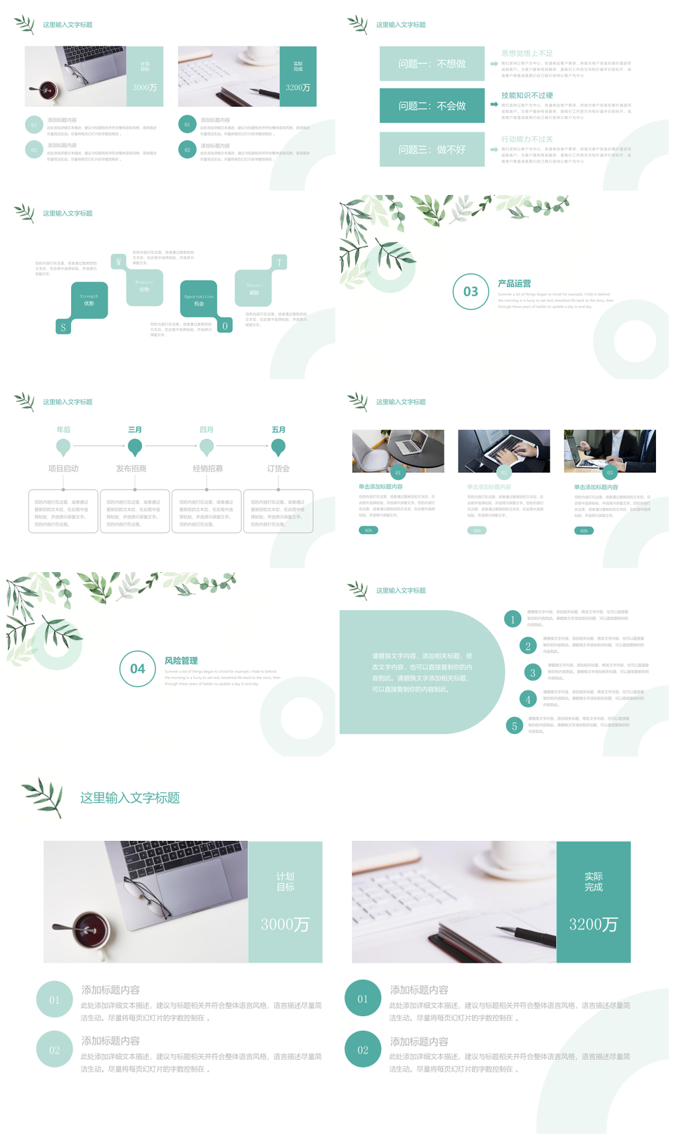 2025绿色极简风小清新总结计划草叶通用PPT模板