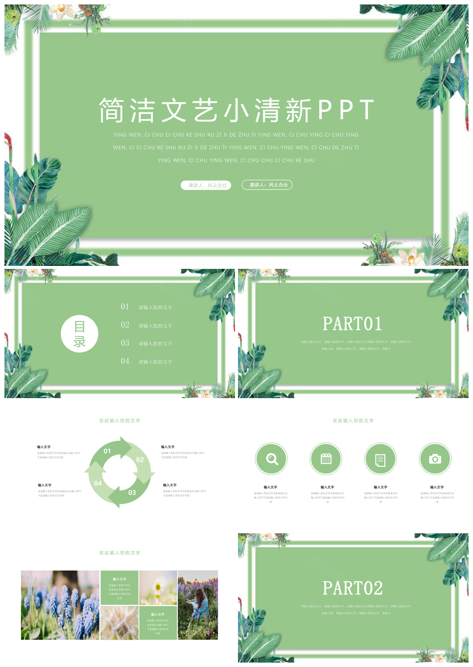 绿色极简小清新文艺风工作汇报通用PPT模板
