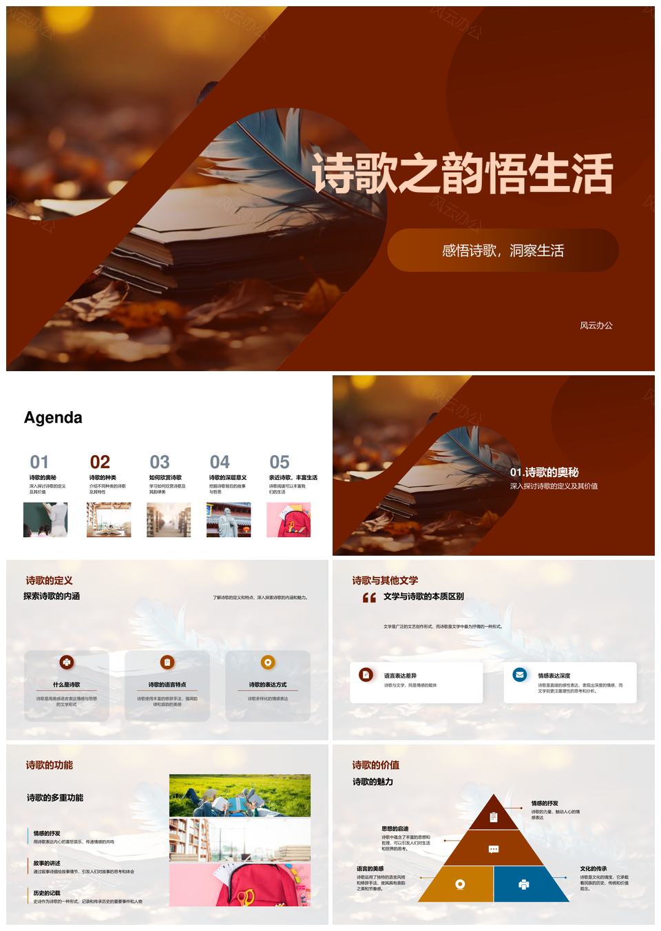 风云办公提供的诗书生活史诗田园抒情叙事悲剧悟PPT模板,下载格式为pptx,一共29页,作品中文字及图均可以修改和编辑,图片更改请在作品中右键图片并更换,文字修改请直接点击文字进行修改。
