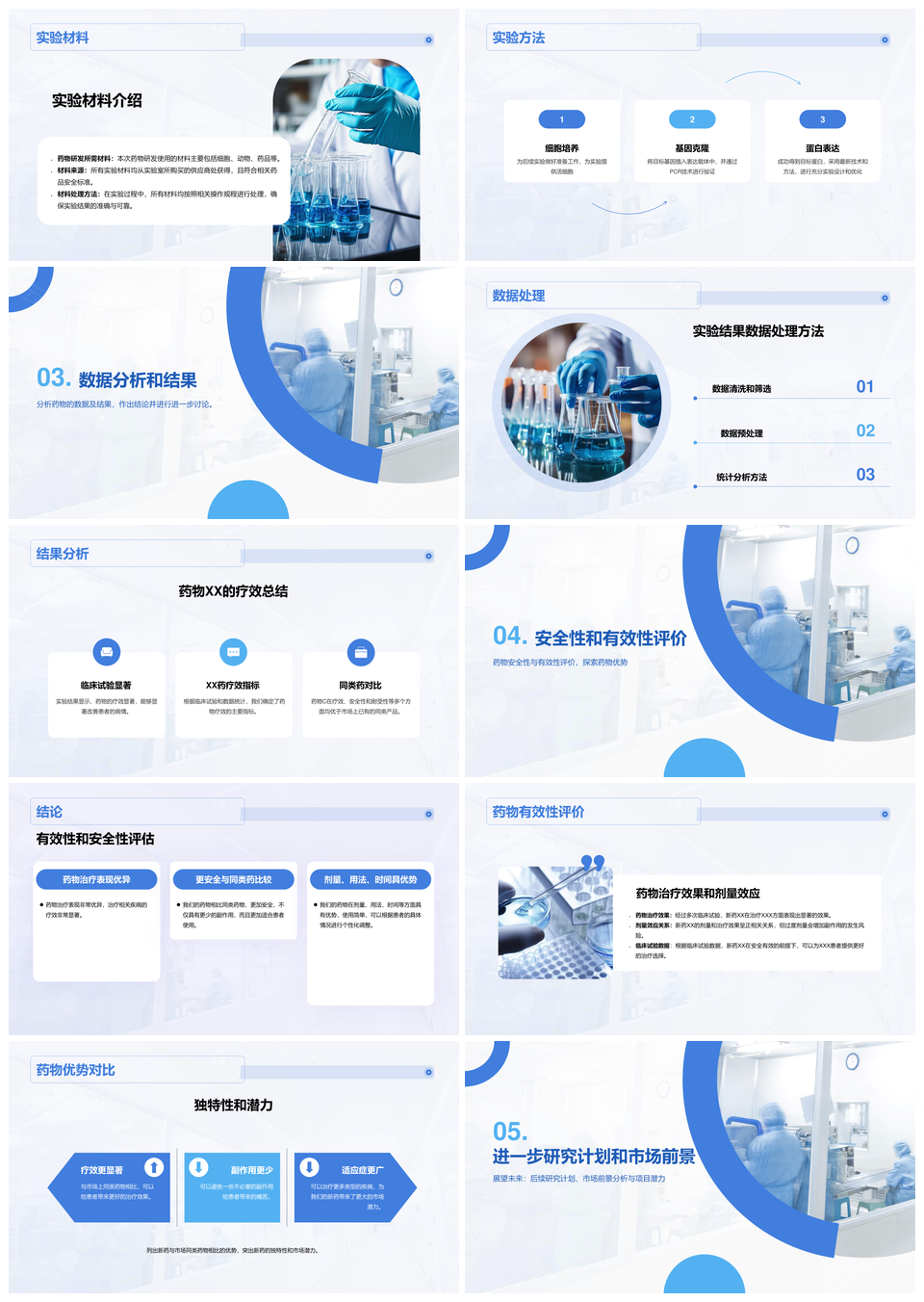 蓝色现代医疗研发项目答辩医务人员实验研究PPT模板推荐