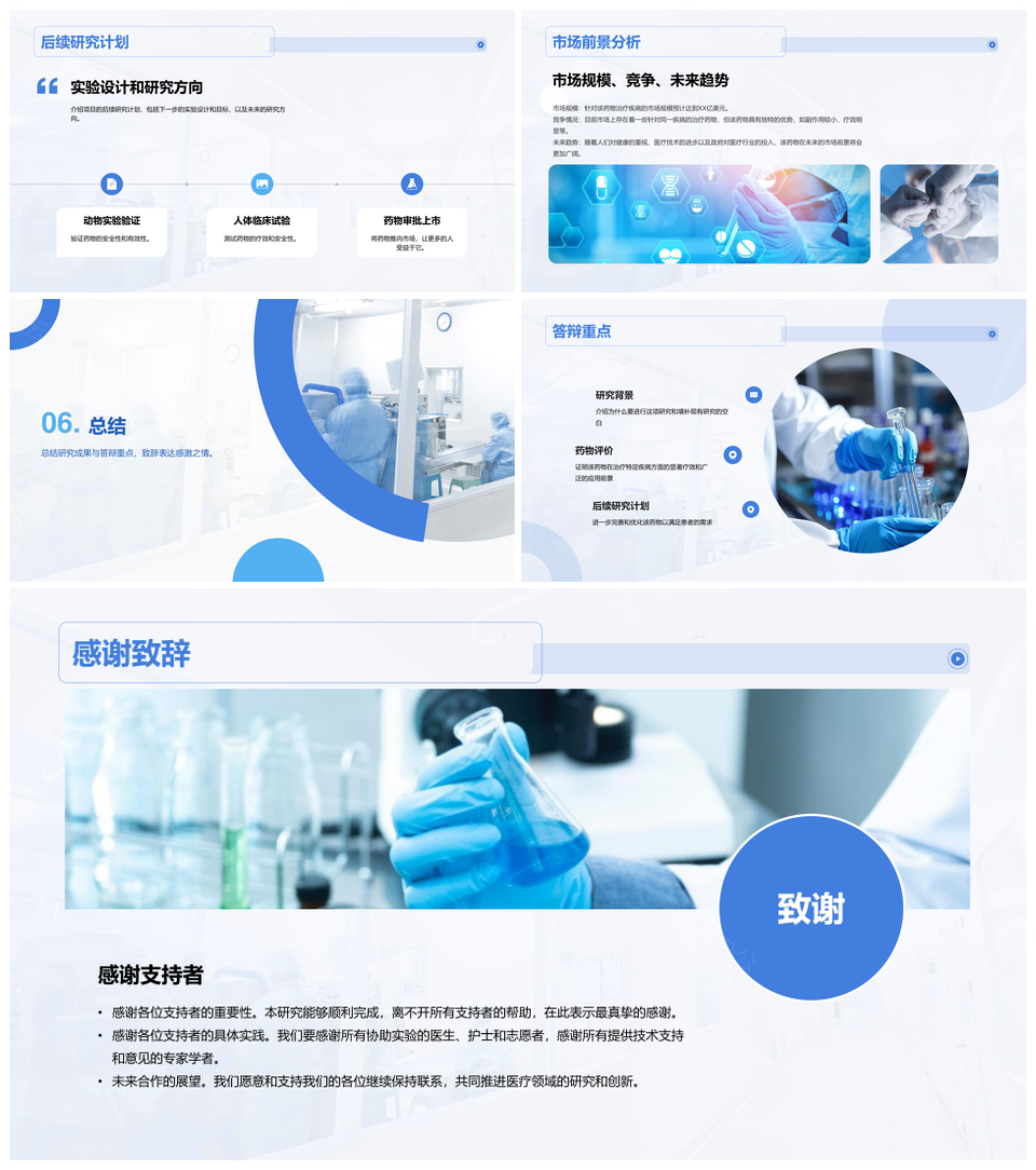 蓝色现代医疗研发项目答辩医务人员实验研究PPT模板