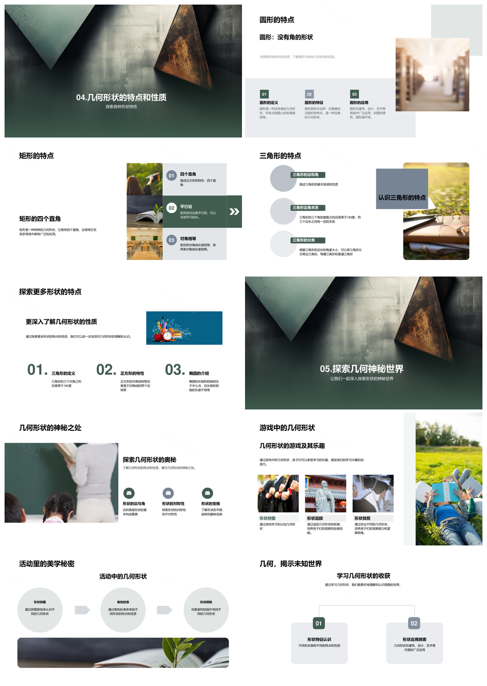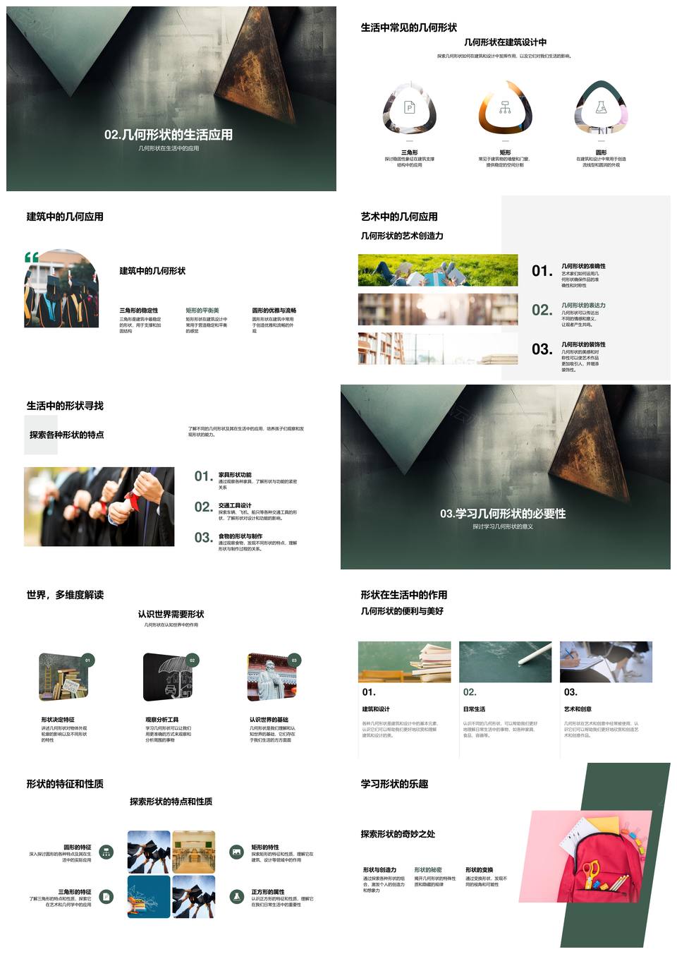 风云办公提供的幼儿几何特征分类与建筑艺术教学PPT模板,下载格式为pptx,一共28页,作品中文字及图均可以修改和编辑,图片更改请在作品中右键图片并更换,文字修改请直接点击文字进行修改。