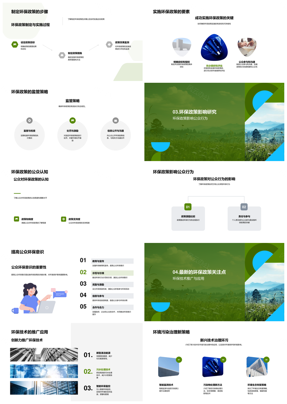 绿色蓝图环保政策实施影响公众环保意识PPT模板推荐