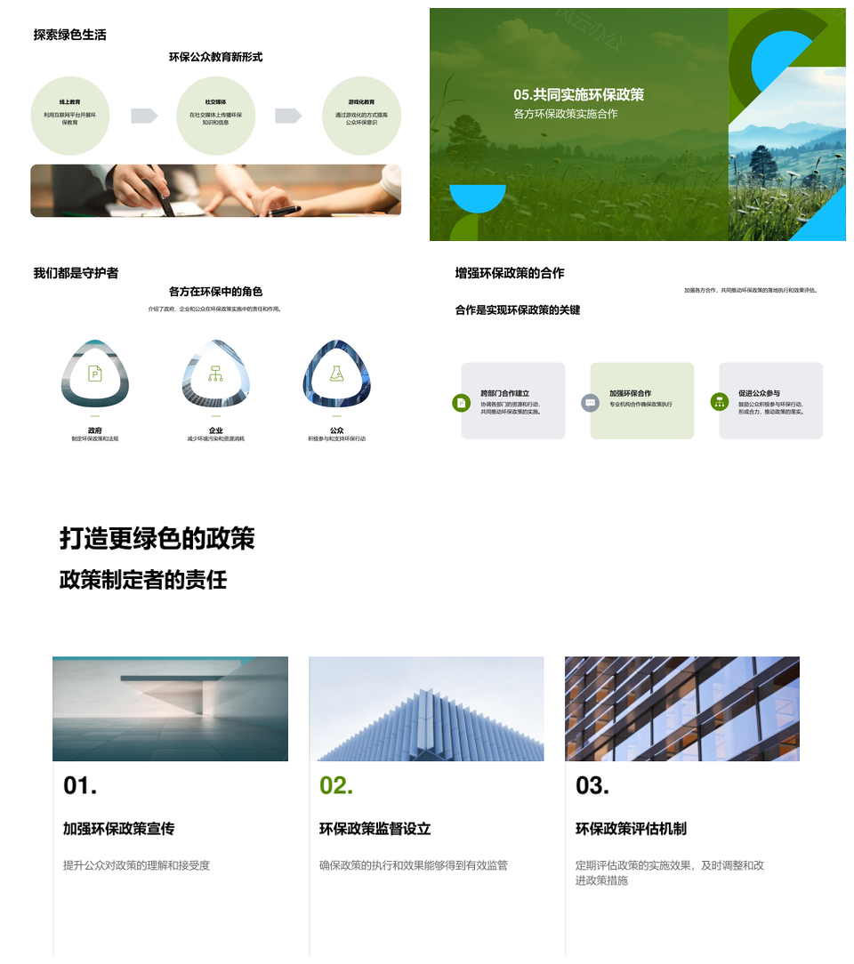 这是一张绿色蓝图环保政策实施影响公众环保意识PPT模板,包含绿色蓝图、环保政策、实施、影响、公众、环保意识等主题内容,也可用作绿色蓝图环保政策实施、绿色蓝图环保政策、蓝图环保政策实施影响、环保政策实施影响公众、实施影响公众环保意识、绿色蓝图、蓝图环保政策、环保政策实施、实施影响、影响公众、公众环保意识、环保政策实施影响、实施影响公众、影响公众环保意识、绿色蓝图环保政策实施影响等PPT场景使用。 风云办公提供的绿色蓝图环保政策实施影响公众环保意识PPT模板,下载格式为pptx,一共23页,作品中文字及图均可以修改和编辑,图片更改请在作品中右键图片并更换,文字修改请直接点击文字进行修改。