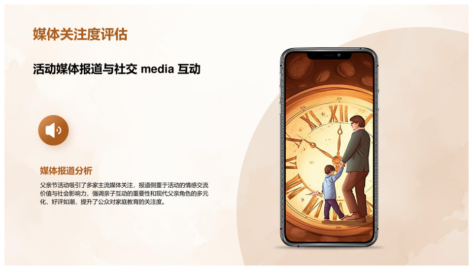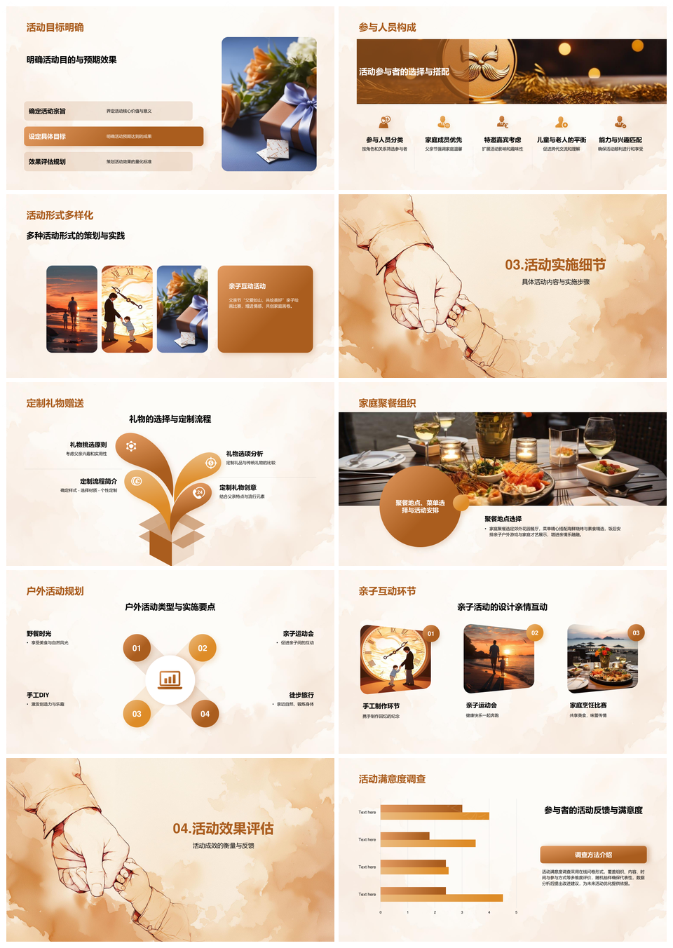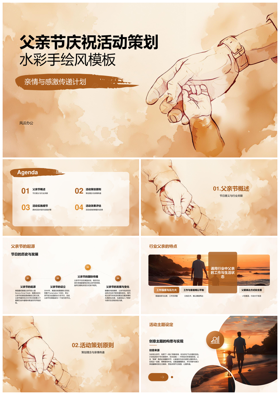 这是一张父亲节家庭聚餐户外活动感恩父爱定制礼物策划PPT模板,包含父亲节、家庭聚餐、户外活动、感恩、父爱、定制礼物、策划等主题内容,也可用作父亲节家庭聚餐户外活动感恩、家庭聚餐户外活动感恩父爱、户外活动感恩父爱定制礼物、感恩父爱定制礼物策划、父亲节家庭聚餐户外活动、家庭聚餐户外活动感恩、户外活动感恩父爱、感恩父爱定制礼物、父爱定制礼物策划、父亲节家庭聚餐、家庭聚餐户外活动、户外活动感恩、感恩父爱、父爱定制礼物、定制礼物策划等PPT场景使用。 风云办公提供的父亲节家庭聚餐户外活动感恩父爱定制礼物策划PPT模板,下载格式为pptx,一共19页,作品中文字及图均可以修改和编辑,图片更改请在作品中右键图片并更换,文字修改请直接点击文字进行修改。
