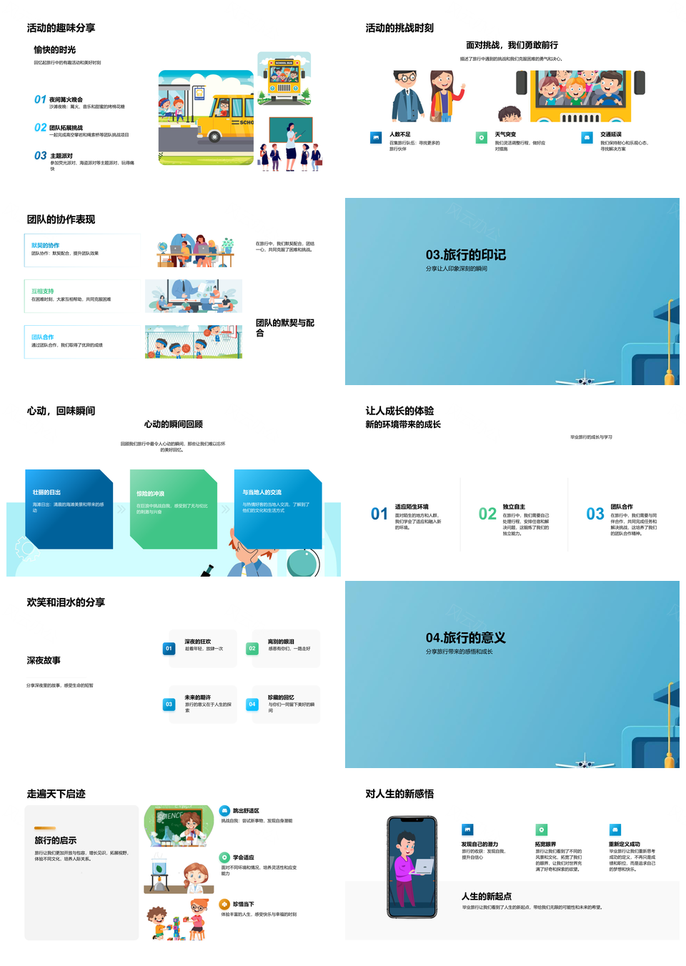 毕业旅行规划准备特色活动挑战体验感悟回顾PPT模板推荐
