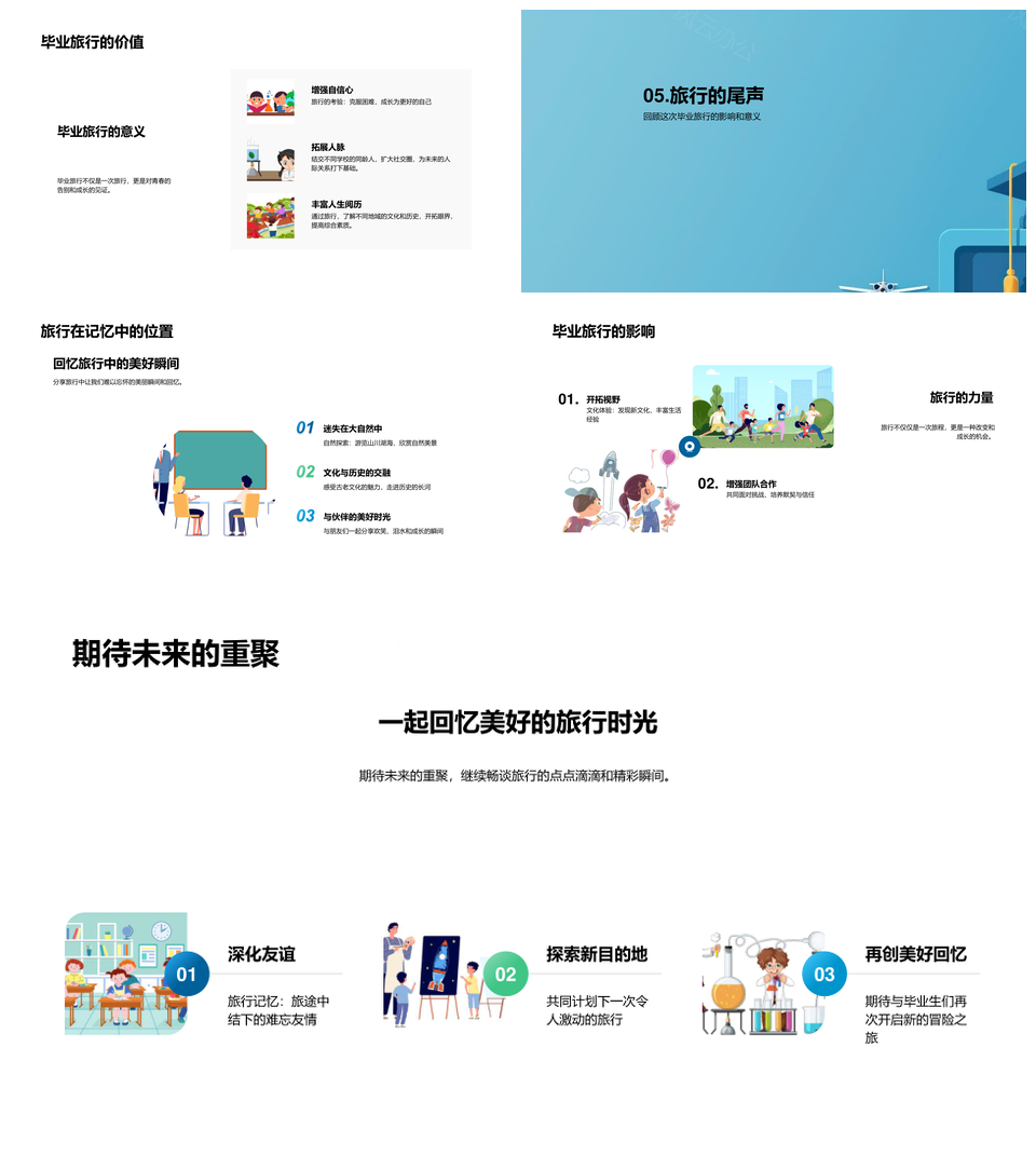 毕业旅行规划准备特色活动挑战体验感悟回顾PPT模板