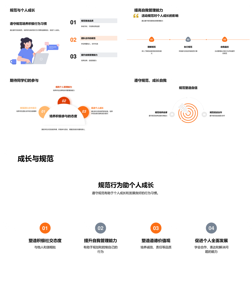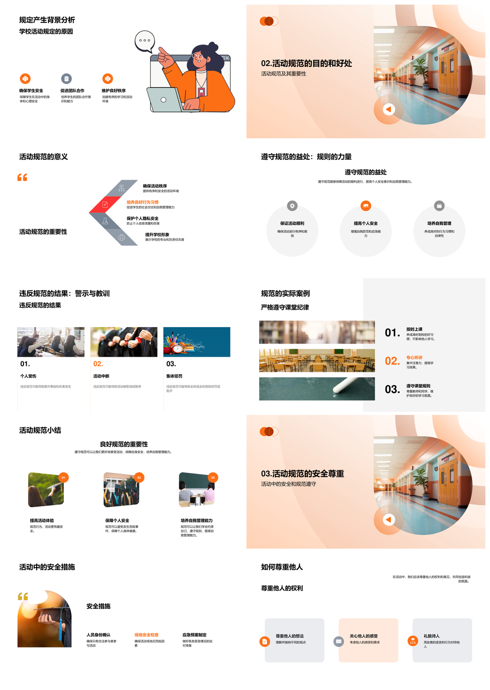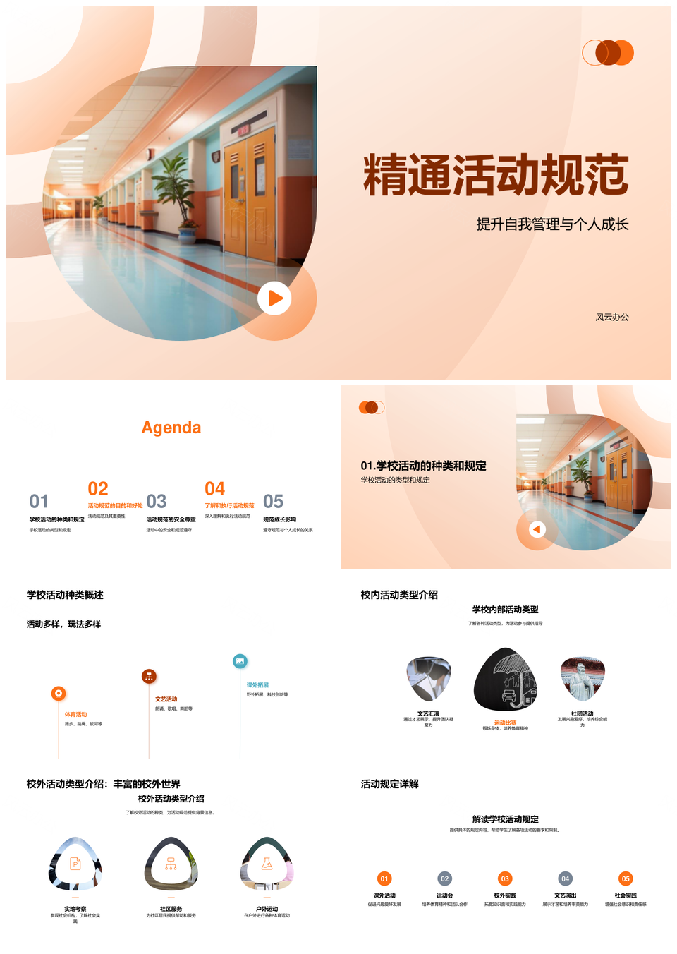 这是一张学校内外活动规范与安全自我管理促成长PPT模板,包含学校、内外、活动、规范、安全、自我管理、促成长等主题内容,也可用作学校内外活动规范、内外活动规范安全、活动规范安全自我、规范安全自我管理、安全自我管理促成长、学校内外活动规范安全、内外活动规范安全自我、活动规范安全自我管理、规范安全自我管理促成长、学校内外活动规范安全自我、内外活动规范安全自我管理、活动规范安全自我管理促成长、学校规范安全自我管理、规范安全自我管理成长、安全自我管理成长内外等PPT场景使用。 风云办公提供的学校内外活动规范与安全自我管理促成长PPT模板,下载格式为pptx,一共33页,作品中文字及图均可以修改和编辑,图片更改请在作品中右键图片并更换,文字修改请直接点击文字进行修改。