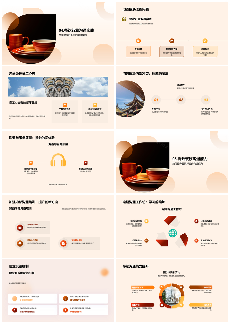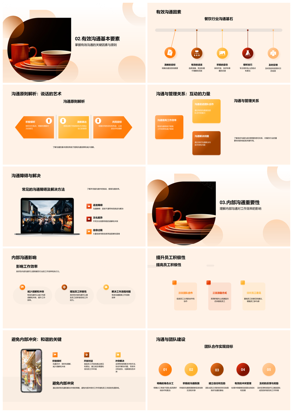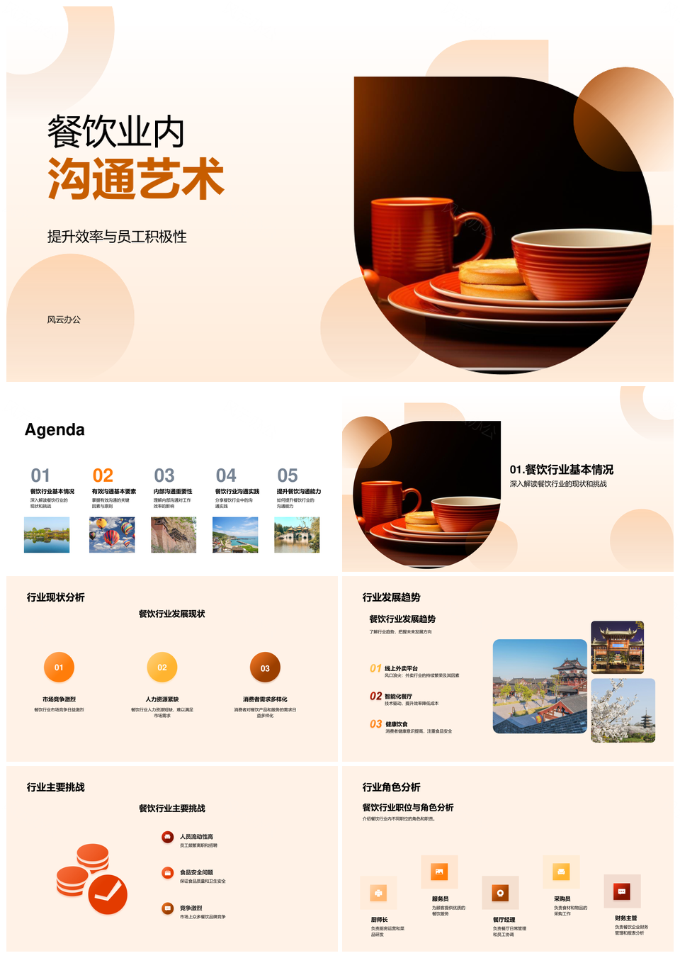 这是一张餐饮高效沟通提升员工积极性应对行业挑战PPT模板,包含餐饮、高效沟通、提升、员工积极性、应对、行业挑战等主题内容,也可用作高效沟通应对挑战、餐饮高效应对挑战、提升员工应对挑战、高效沟通提升积极性、沟通提升员工积极性、高效沟通提升、提升员工积极性、应对行业挑战、餐饮高效沟通、高效应对挑战、高效沟通、员工积极性、行业挑战、应对挑战、餐饮高效等PPT场景使用。 风云办公提供的餐饮高效沟通提升员工积极性应对行业挑战PPT模板,下载格式为pptx,一共28页,作品中文字及图均可以修改和编辑,图片更改请在作品中右键图片并更换,文字修改请直接点击文字进行修改。