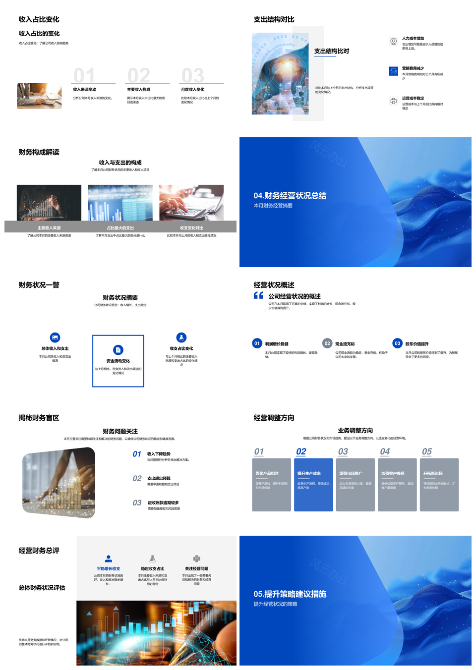 这是一张高层月度财务审计收支资金流向经营策略会计报告PPT模板,包含高层、月度、财务审计、收支、资金、流向、经营策略、会计报告等主题内容,也可用作高层月度财务审计收支、月度财务审计收支资金流向、财务审计收支资金流向经营、收支资金流向经营策略会计、资金流向经营策略会计报告、高层月度审计收支资金、月度财务审计资金流向、财务审计资金流向策略、高层经营策略会计报告、月度收支资金流向经营、审计资金流向策略会计、收支经营策略会计报告、高层财务审计会计报告、财务审计经营策略会计、审计资金流向会计报告等PPT场景使用。 风云办公提供的高层月度财务审计收支资金流向经营策略会计报告PPT模板,下载格式为pptx,一共33页,作品中文字及图均可以修改和编辑,图片更改请在作品中右键图片并更换,文字修改请直接点击文字进行修改。