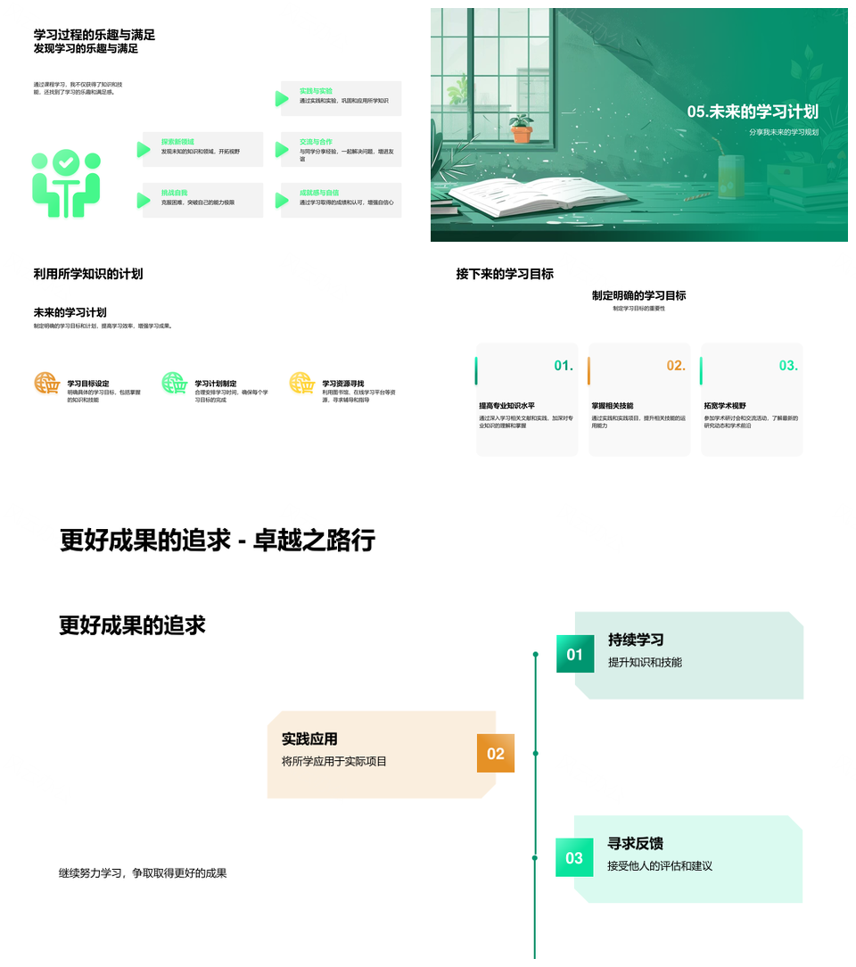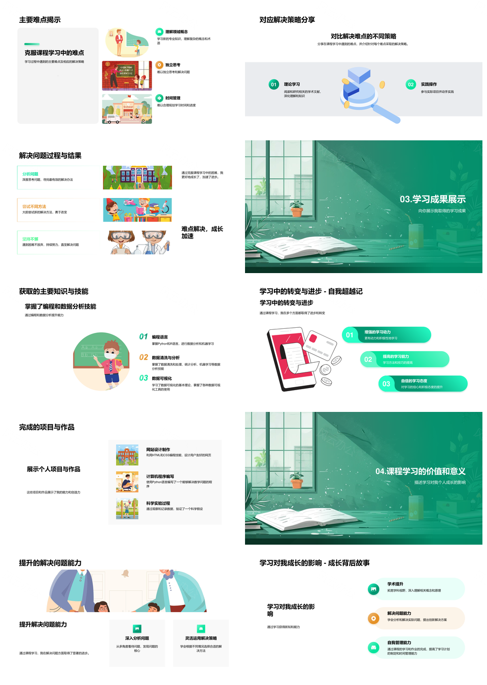 课程学习成果知识技能解决策略总结未来规划PPT模板推荐