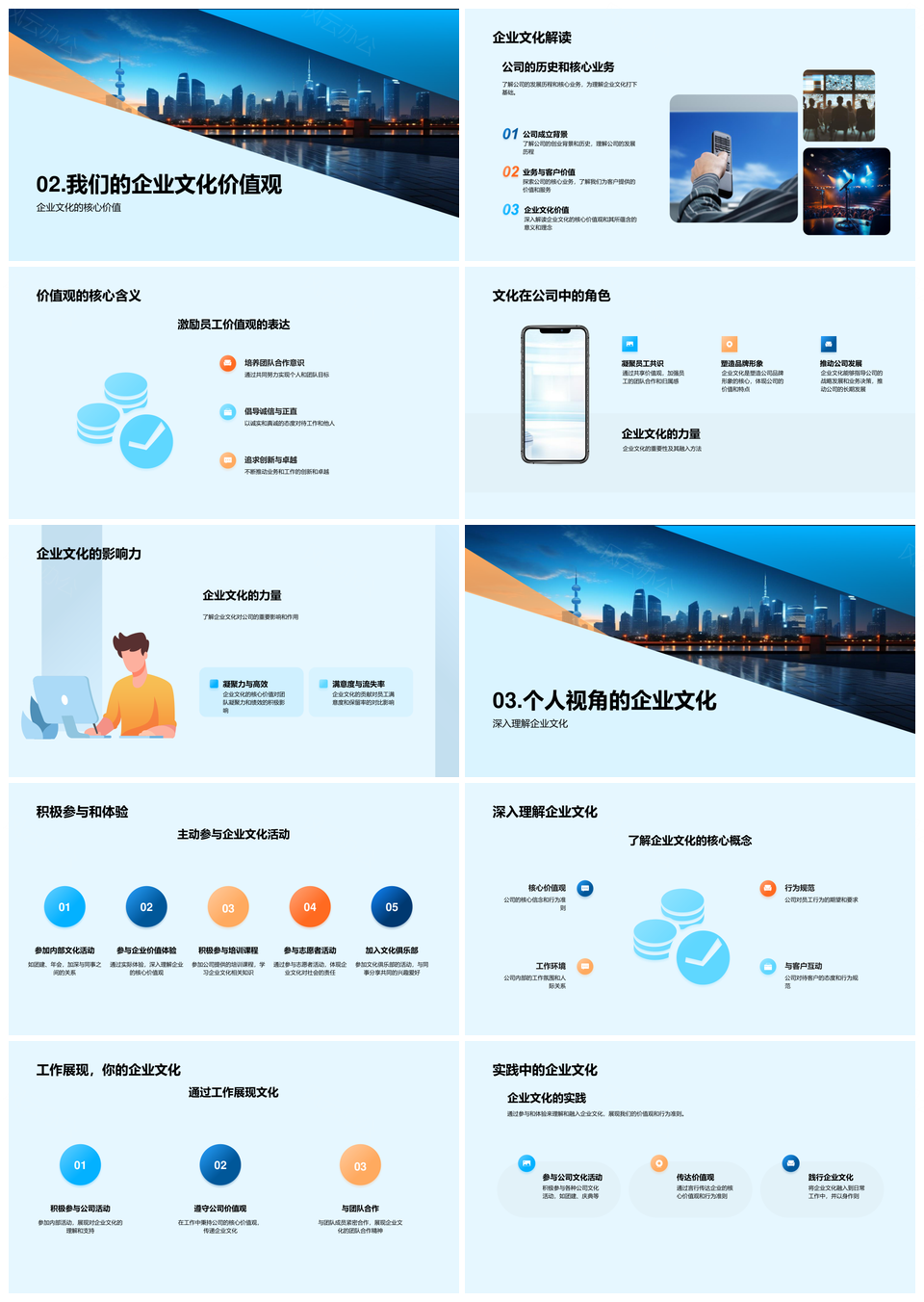 这是一张企业文化发展历程中的价值观与核心业务PPT模板,包含企业文化、发展历程、价值观、核心业务等主题内容,也可用作企业文化发展历程价值观核心业务、企业文化发展历程价值观、企业文化发展历程核心业务、发展历程价值观核心业务、企业文化价值观核心业务、企业文化发展历程、发展历程价值观、发展历程核心业务、企业文化价值观、价值观核心业务、企业文化核心业务、企业文化发展核心业务、发展企业文化价值观、企业文化价值观发展、核心业务发展历程等PPT场景使用。 风云办公提供的企业文化发展历程中的价值观与核心业务PPT模板,下载格式为pptx,一共28页,作品中文字及图均可以修改和编辑,图片更改请在作品中右键图片并更换,文字修改请直接点击文字进行修改。