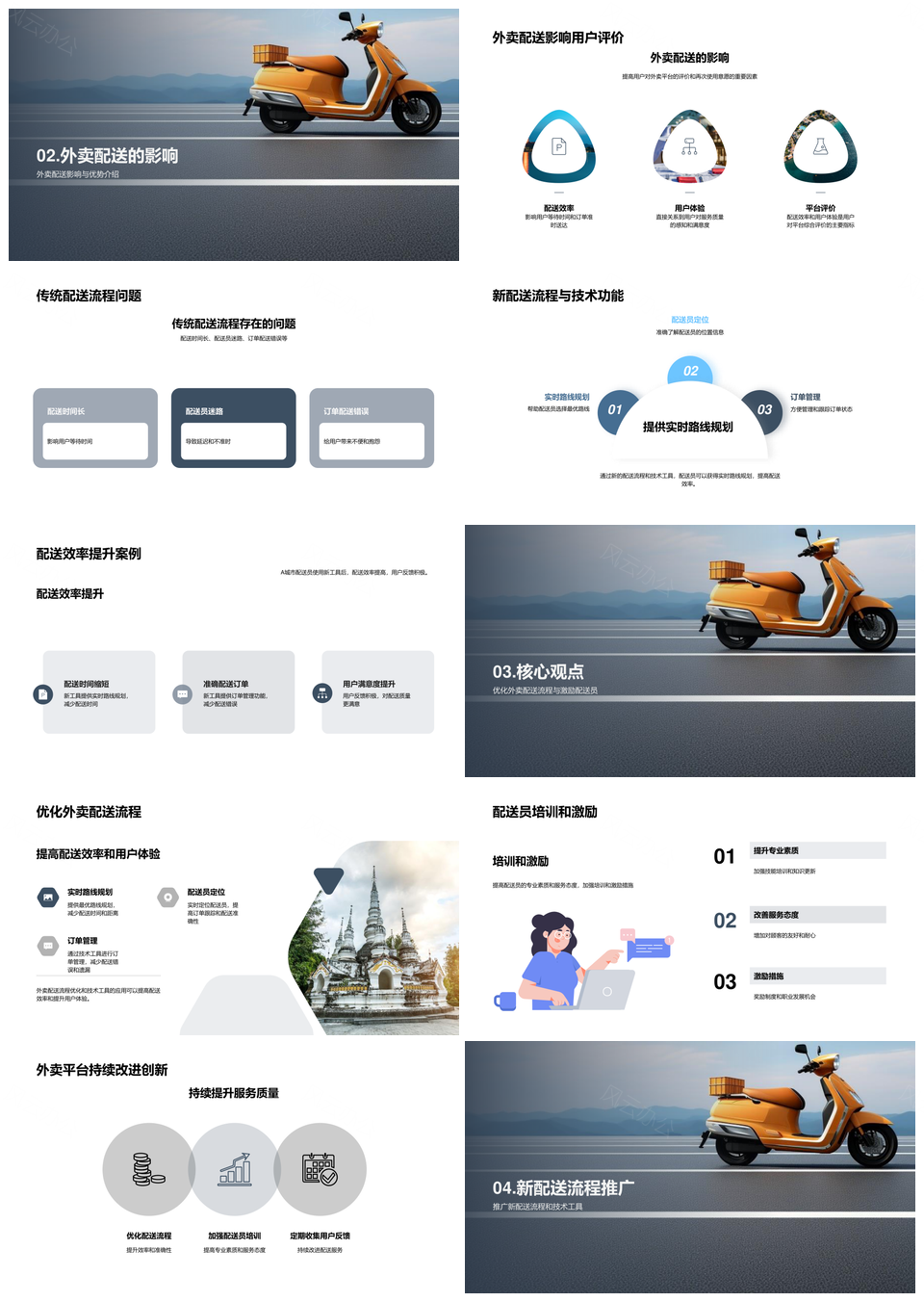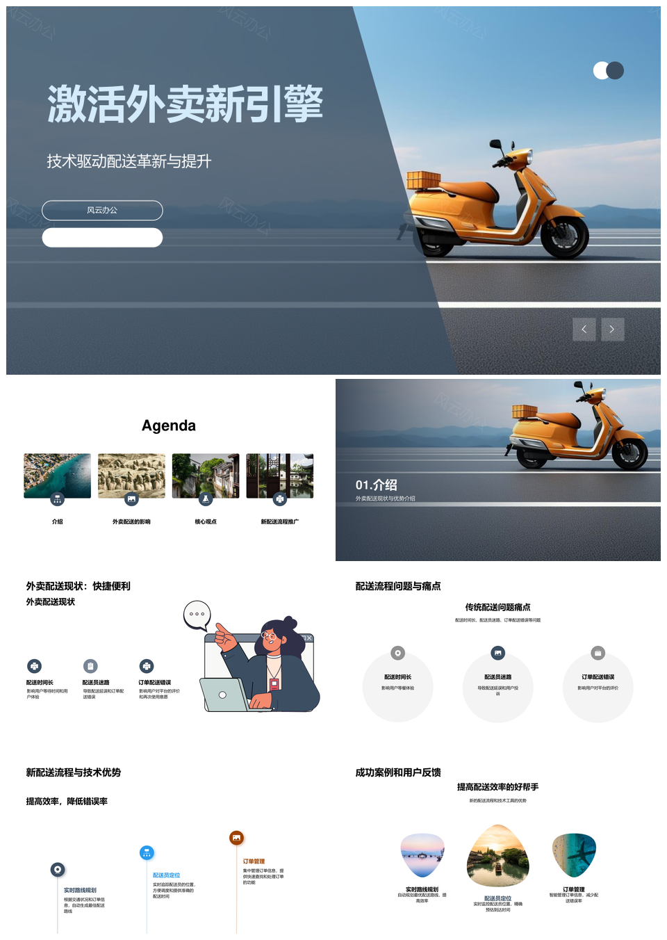 风云办公提供的外卖配送效率优化与用户体验提升技术PPT模板,下载格式为pptx,一共21页,作品中文字及图均可以修改和编辑,图片更改请在作品中右键图片并更换,文字修改请直接点击文字进行修改。