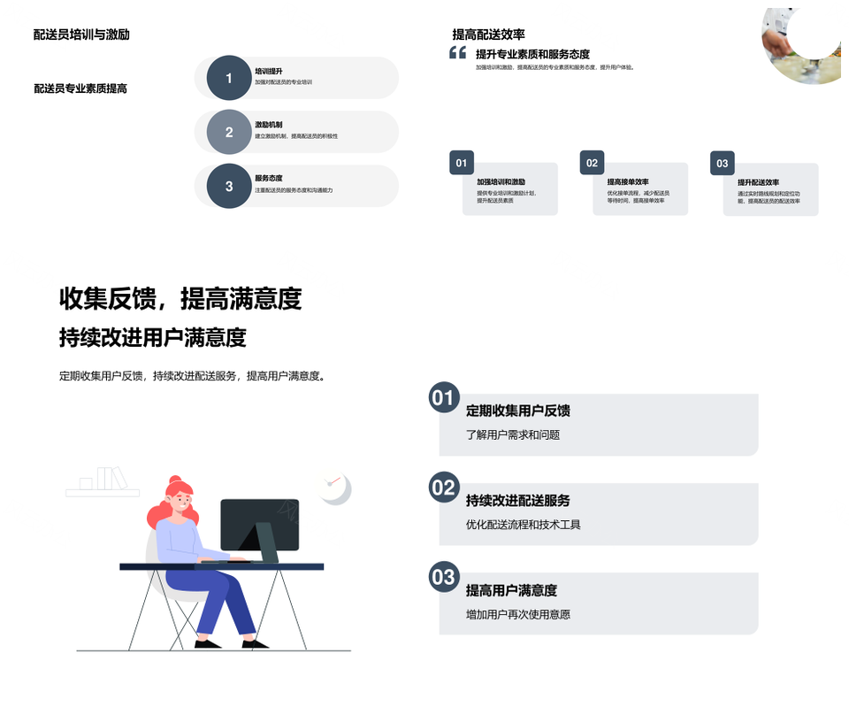 这是一张外卖配送效率优化与用户体验提升技术PPT模板,包含外卖配送、效率优化、用户体验、提升技术等主题内容,也可用作外卖配送效率优化、配送效率优化技术、用户体验提升技术、外卖配送用户体验提升、效率优化用户体验、配送效率优化、效率优化技术、用户体验提升、体验提升技术、外卖配送技术、优化用户体验、外卖配送、配送效率、效率优化、用户体验等PPT场景使用。