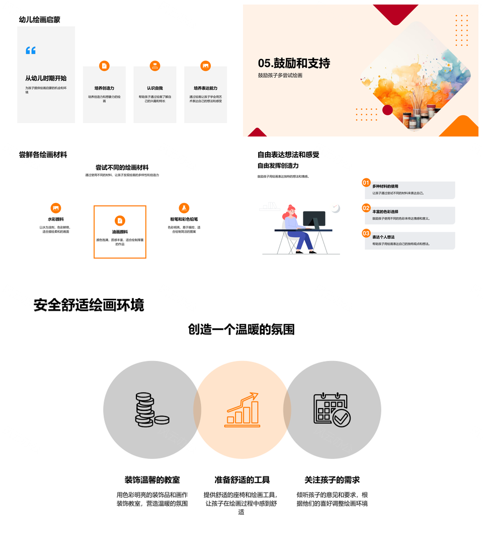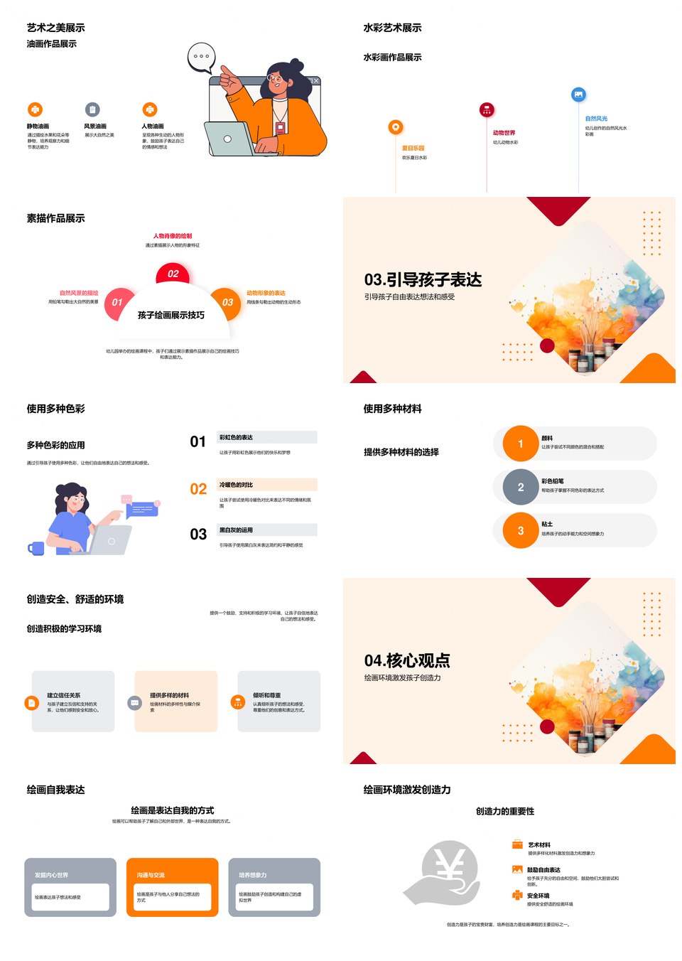 风云办公提供的幼儿绘画启蒙课探索自我艺术师PPT模板,下载格式为pptx,一共23页,作品中文字及图均可以修改和编辑,图片更改请在作品中右键图片并更换,文字修改请直接点击文字进行修改。