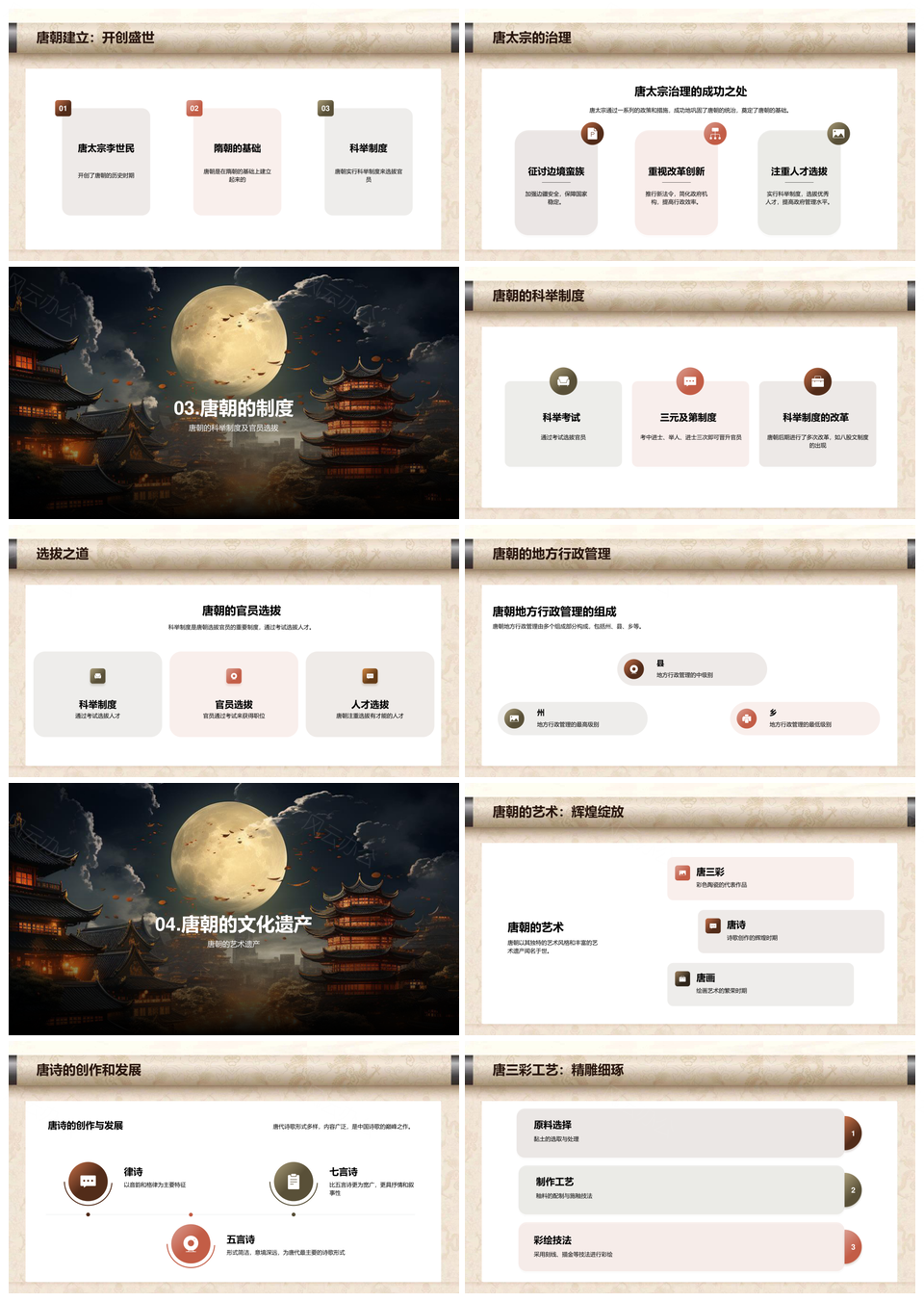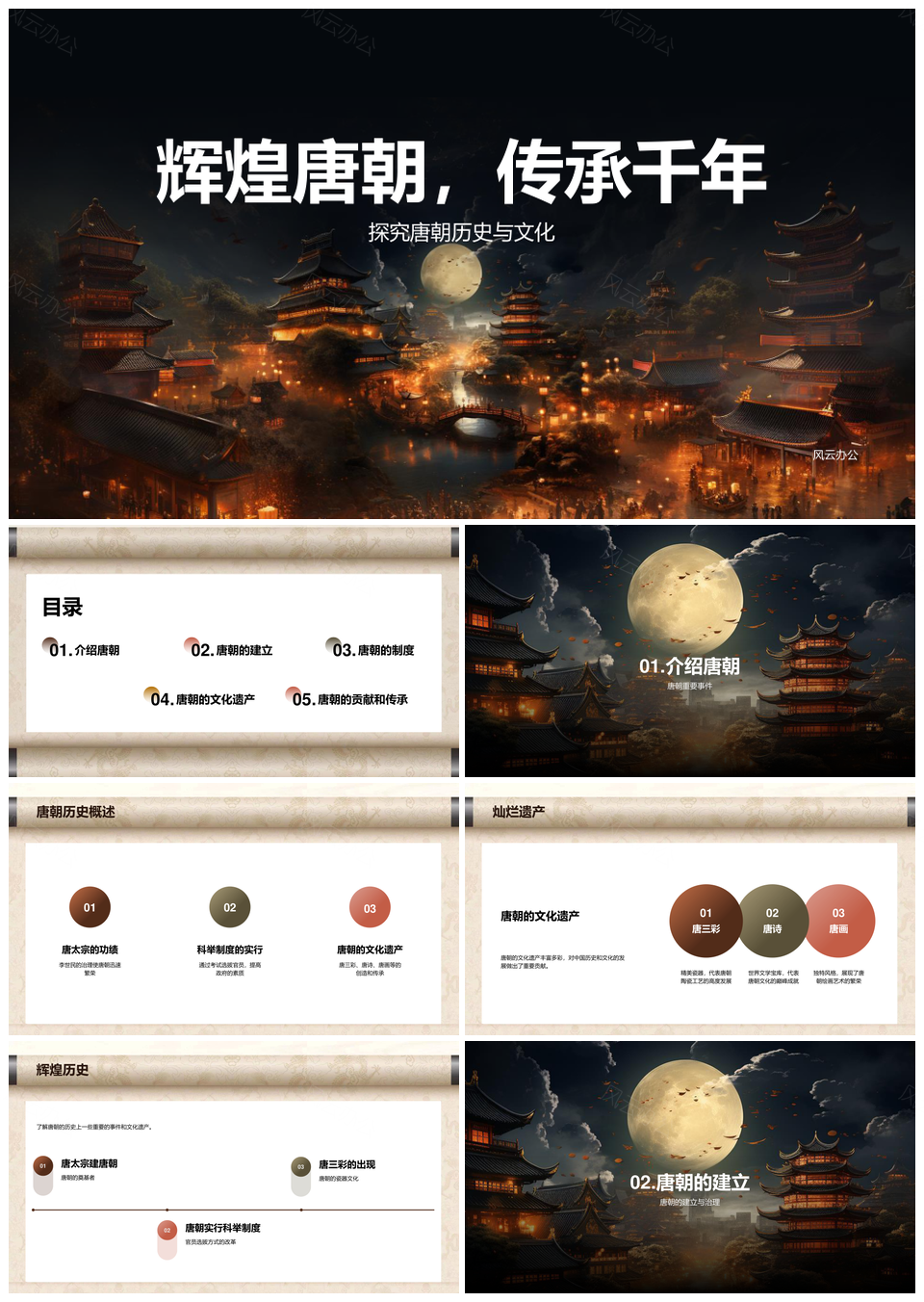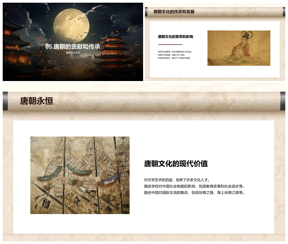 橙色古风大唐盛世唐朝传承前年PPT模板推荐