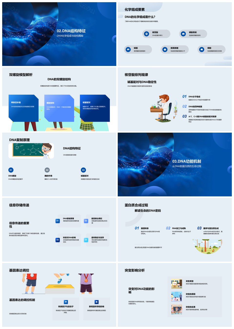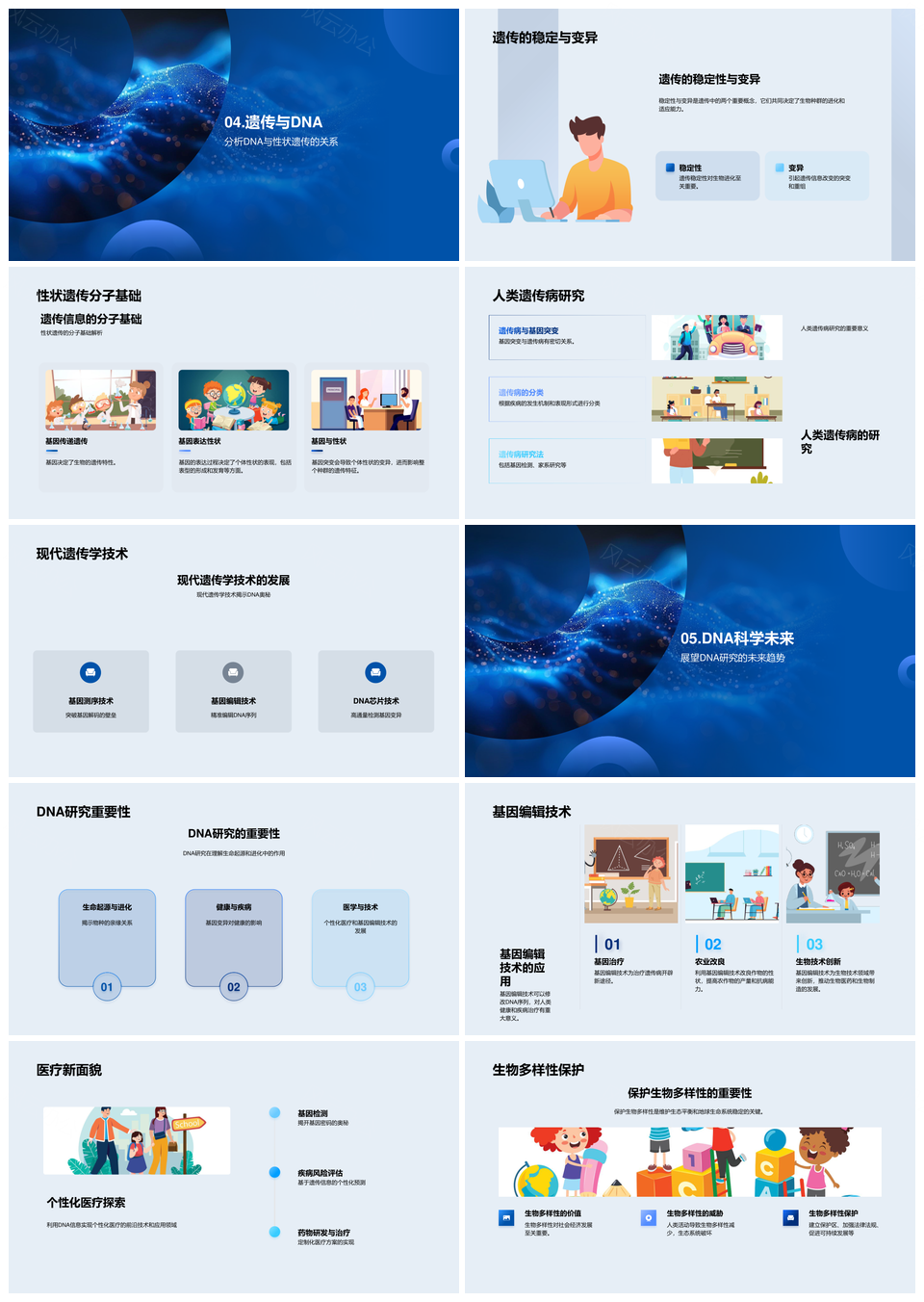 这是一张DNA解码遗传传递复制合成基因编辑调控PPT模板,包含DNA、解码、遗传、传递、复制、合成、基因、编辑、调控等主题内容,也可用作DNA解码遗传传递、解码遗传传递复制、遗传传递复制合成、传递复制合成基因、复制合成基因编辑、合成基因编辑调控、DNA解码遗传复制、解码遗传复制合成、遗传复制合成基因、复制合成基因调控、DNA解码合成基因、解码合成基因编辑、遗传调控基因编辑、复制基因编辑调控、传递合成基因编辑等PPT场景使用。 风云办公提供的DNA解码遗传传递复制合成基因编辑调控PPT模板,下载格式为pptx,一共28页,作品中文字及图均可以修改和编辑,图片更改请在作品中右键图片并更换,文字修改请直接点击文字进行修改。