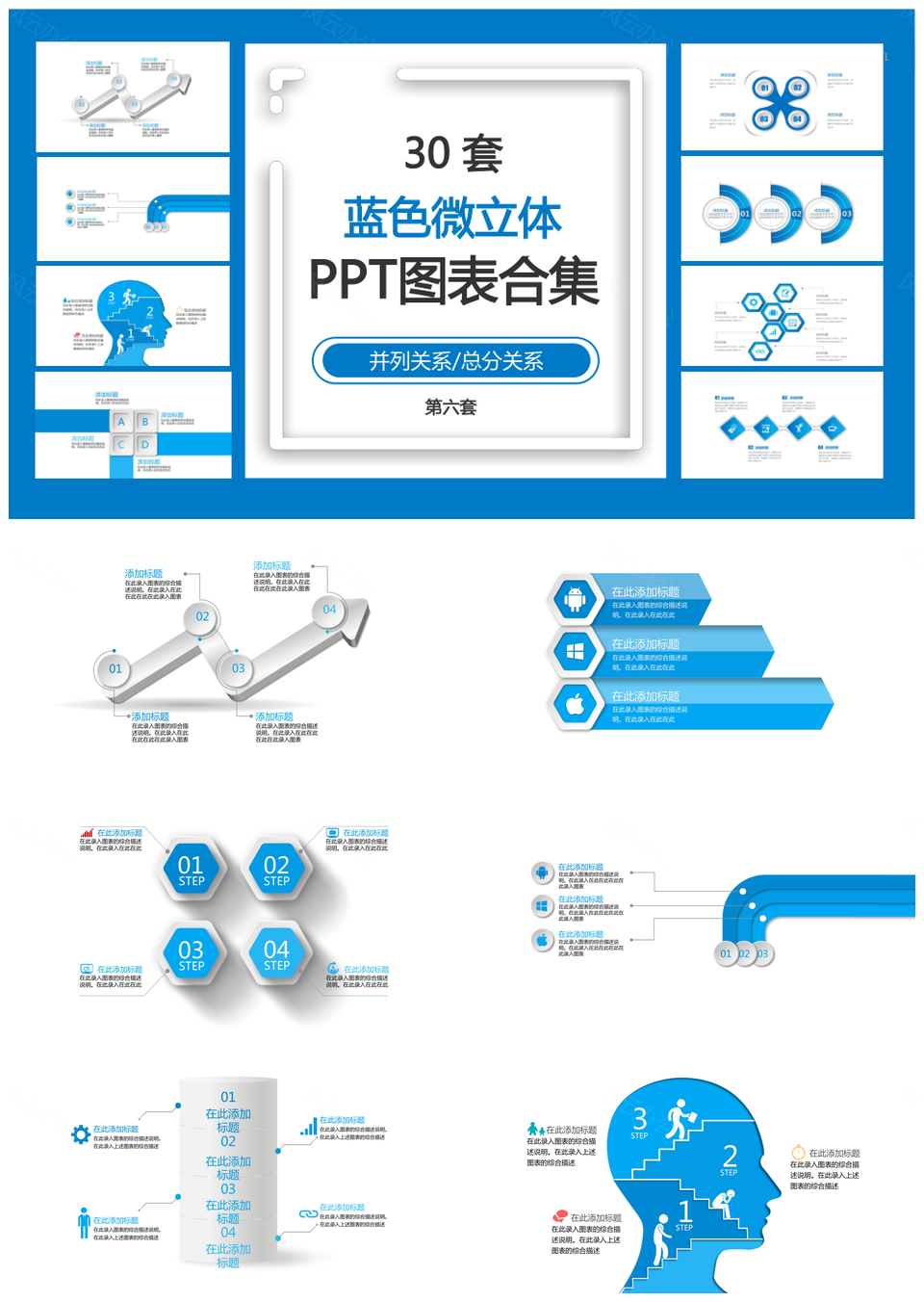 蓝色微立体PPT模板