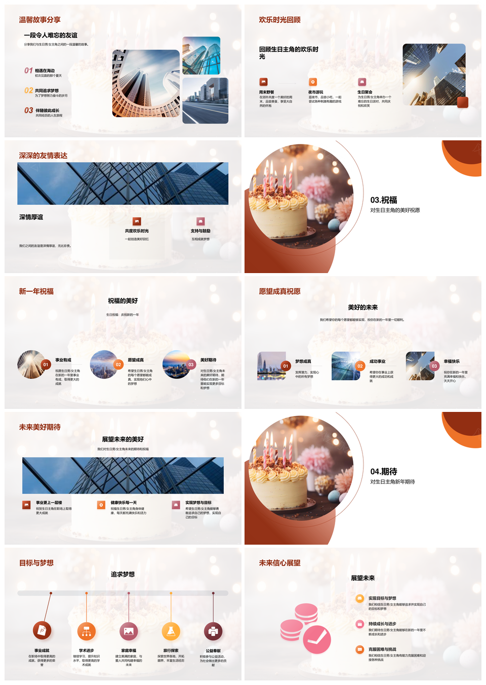 这是一张缤纷时光挚友庆生蛋糕故事献礼寿星开朗PPT模板,包含缤纷时光、挚友、庆生、蛋糕、故事、献礼、寿星、开朗等主题内容,也可用作缤纷时光挚友庆生、时光挚友庆生蛋糕、挚友庆生蛋糕故事、庆生蛋糕故事献礼、蛋糕故事献礼寿星、故事献礼寿星开朗、缤纷时光挚友、时光挚友庆生、挚友庆生蛋糕、庆生蛋糕故事、蛋糕故事献礼、故事献礼寿星、献礼寿星开朗、缤纷时光、时光挚友等PPT场景使用。 风云办公提供的缤纷时光挚友庆生蛋糕故事献礼寿星开朗PPT模板,下载格式为pptx,一共23页,作品中文字及图均可以修改和编辑,图片更改请在作品中右键图片并更换,文字修改请直接点击文字进行修改。