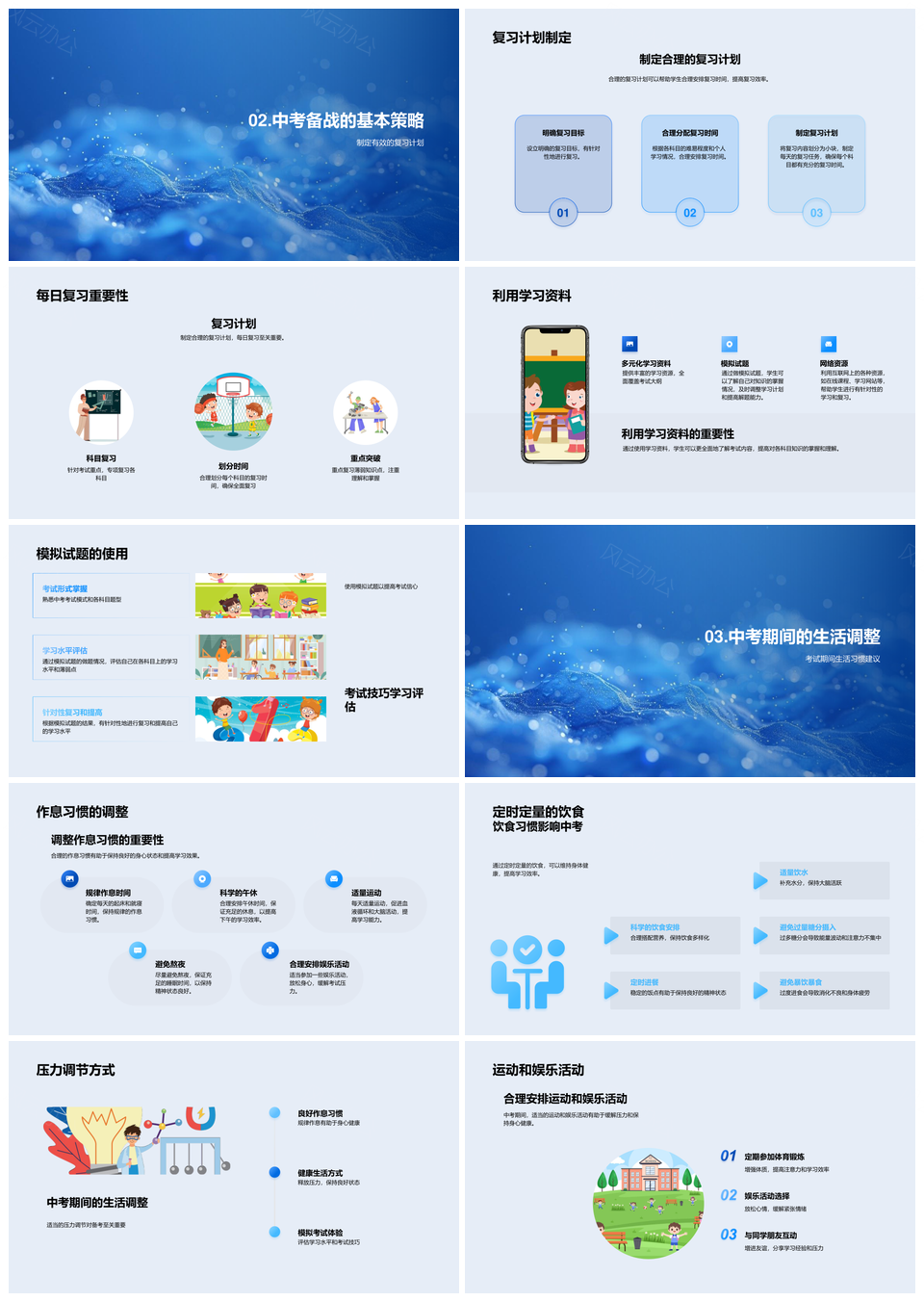 中考策略复习技巧科目要点计划试题作息饮食PPT模板推荐