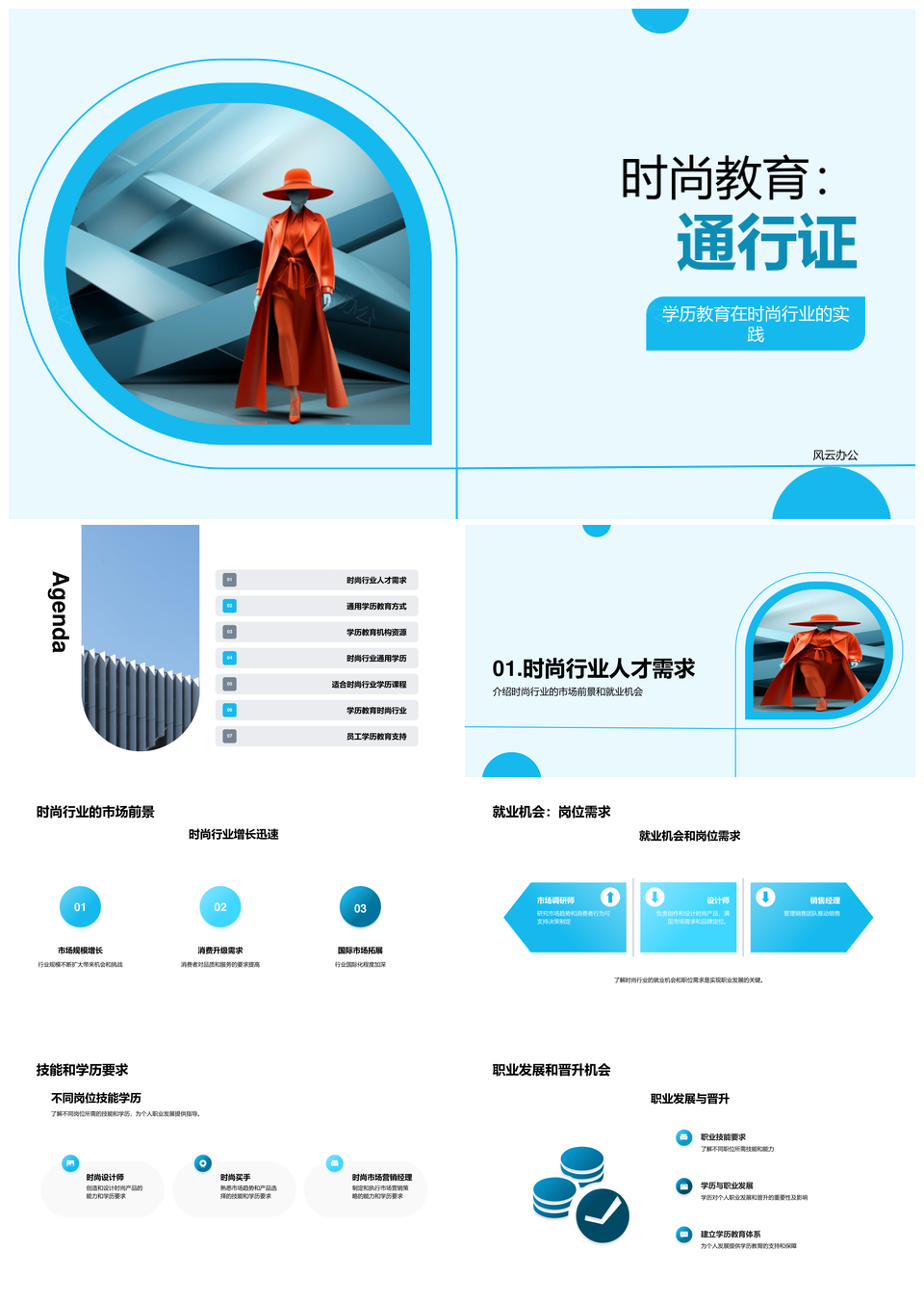 2025时尚学历教育重要性就业发展潜力PPT模板推荐
