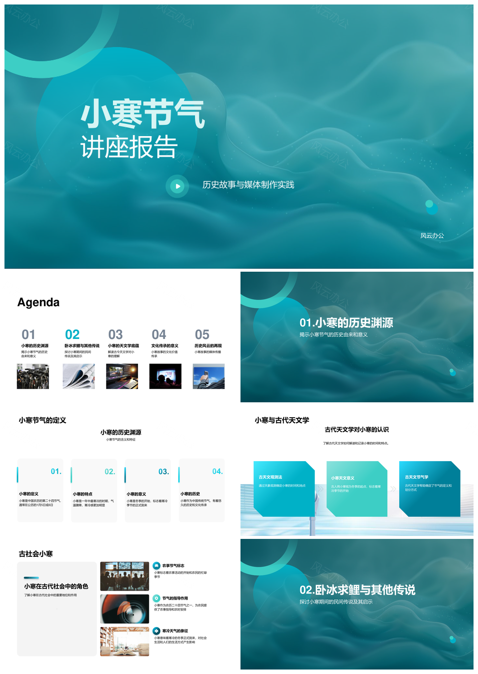 风云办公提供的小寒节气天文传说文化线上媒体讲座PPT模板,下载格式为pptx,一共23页,作品中文字及图均可以修改和编辑,图片更改请在作品中右键图片并更换,文字修改请直接点击文字进行修改。