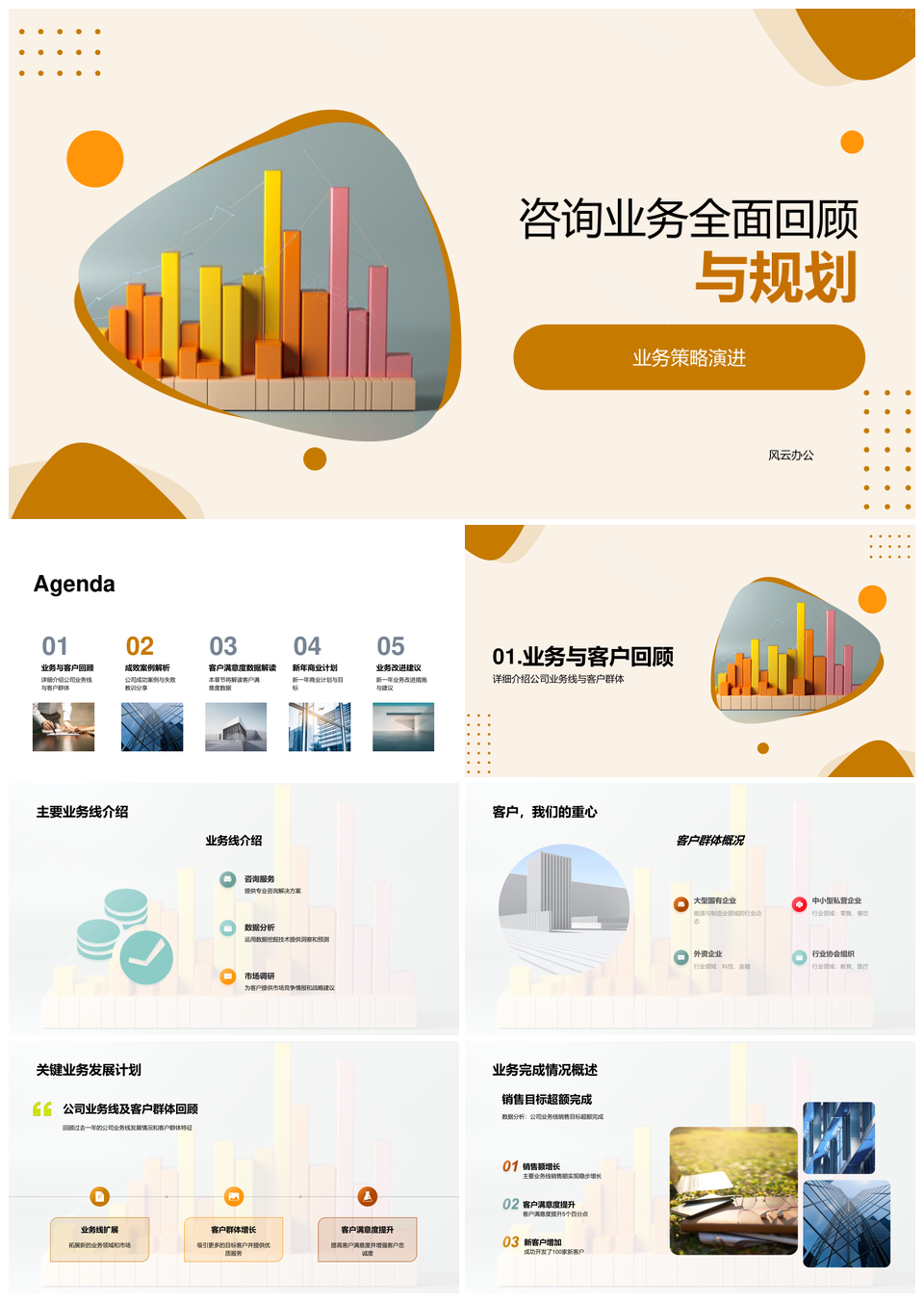 这是一张咨询公司业务策略演进与客户发展回顾规划PPT模板,包含咨询公司、业务策略、演进、客户、发展、回顾、规划等主题内容,也可用作咨询公司业务策略演进客户发展、咨询公司业务策略演进回顾规划、咨询公司业务策略客户发展回顾规划、业务策略演进客户发展回顾规划、咨询公司业务策略演进、咨询公司业务策略客户发展、咨询公司业务策略回顾规划、业务策略演进客户发展、业务策略演进回顾规划、业务策略客户发展回顾规划、咨询公司客户发展回顾规划、客户发展回顾规划、咨询公司客户发展、业务策略演进、业务策略客户发展等PPT场景使用。 风云办公提供的咨询公司业务策略演进与客户发展回顾规划PPT模板,下载格式为pptx,一共21页,作品中文字及图均可以修改和编辑,图片更改请在作品中右键图片并更换,文字修改请直接点击文字进行修改。