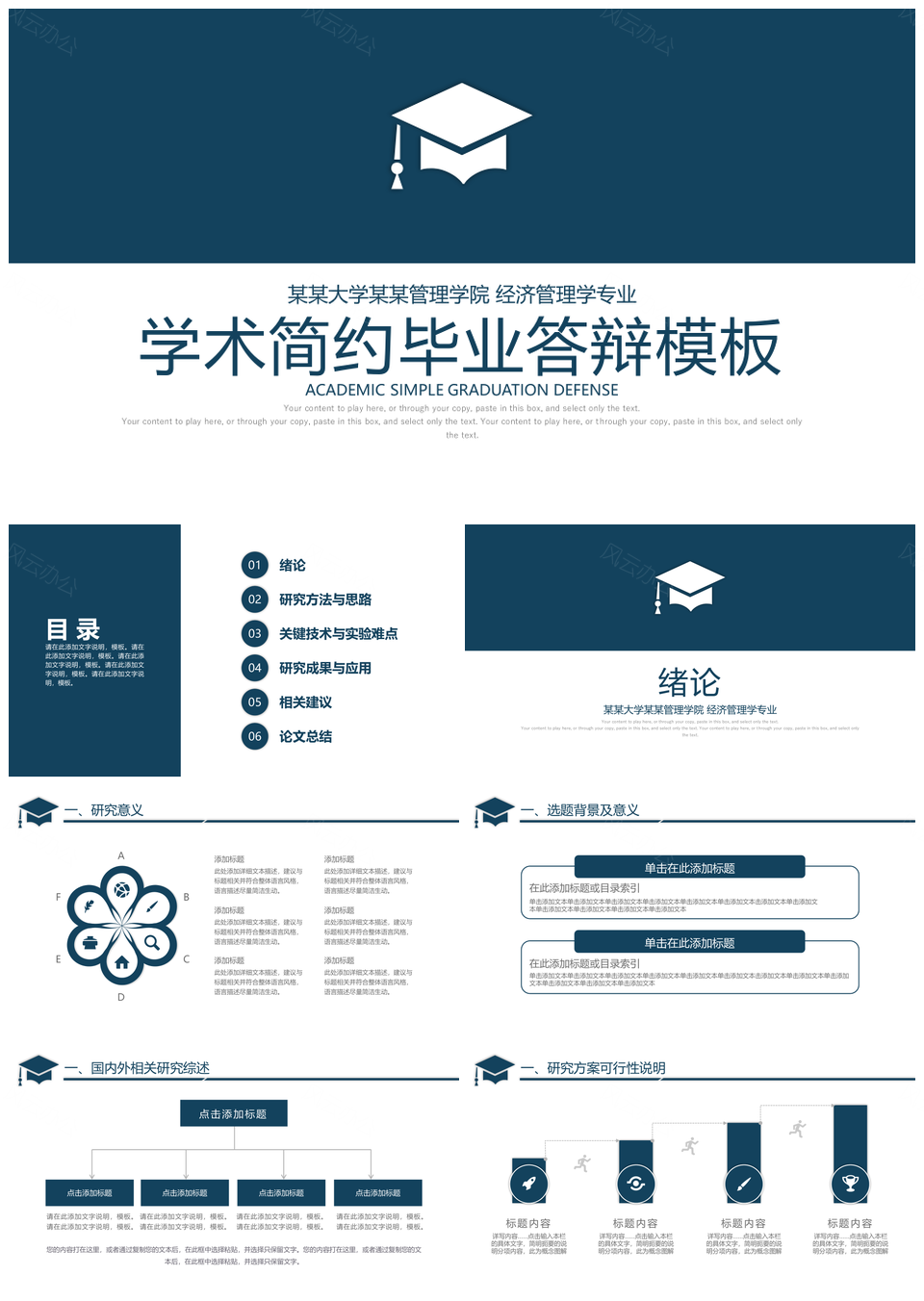 蓝色毕业答辩攻略论文总结通用PPT模板