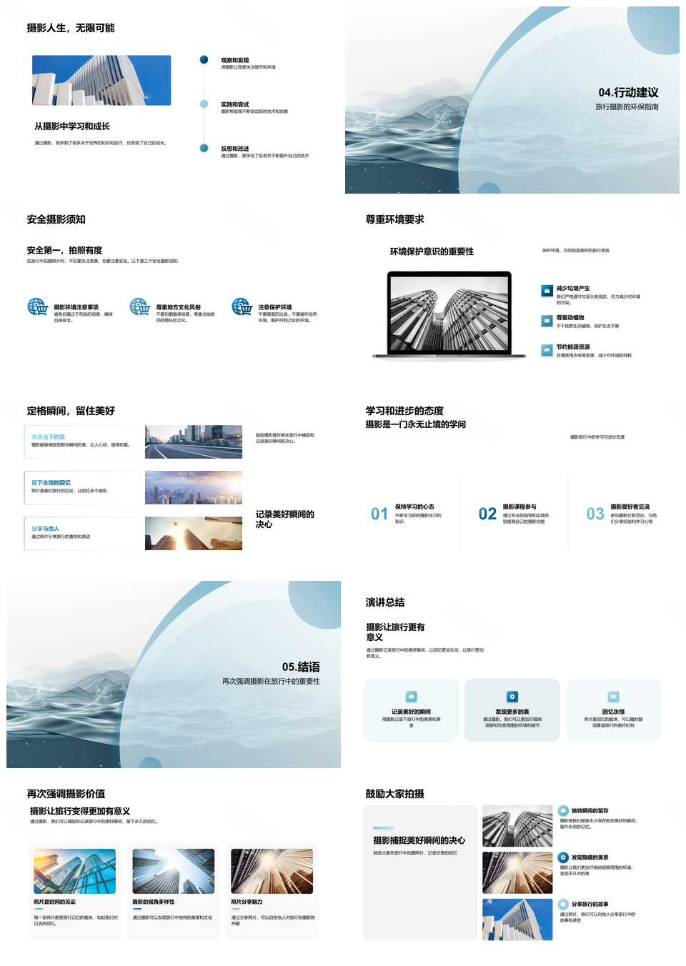 旅行摄影技巧构图器材人文地理艺术文化探索PPT模板